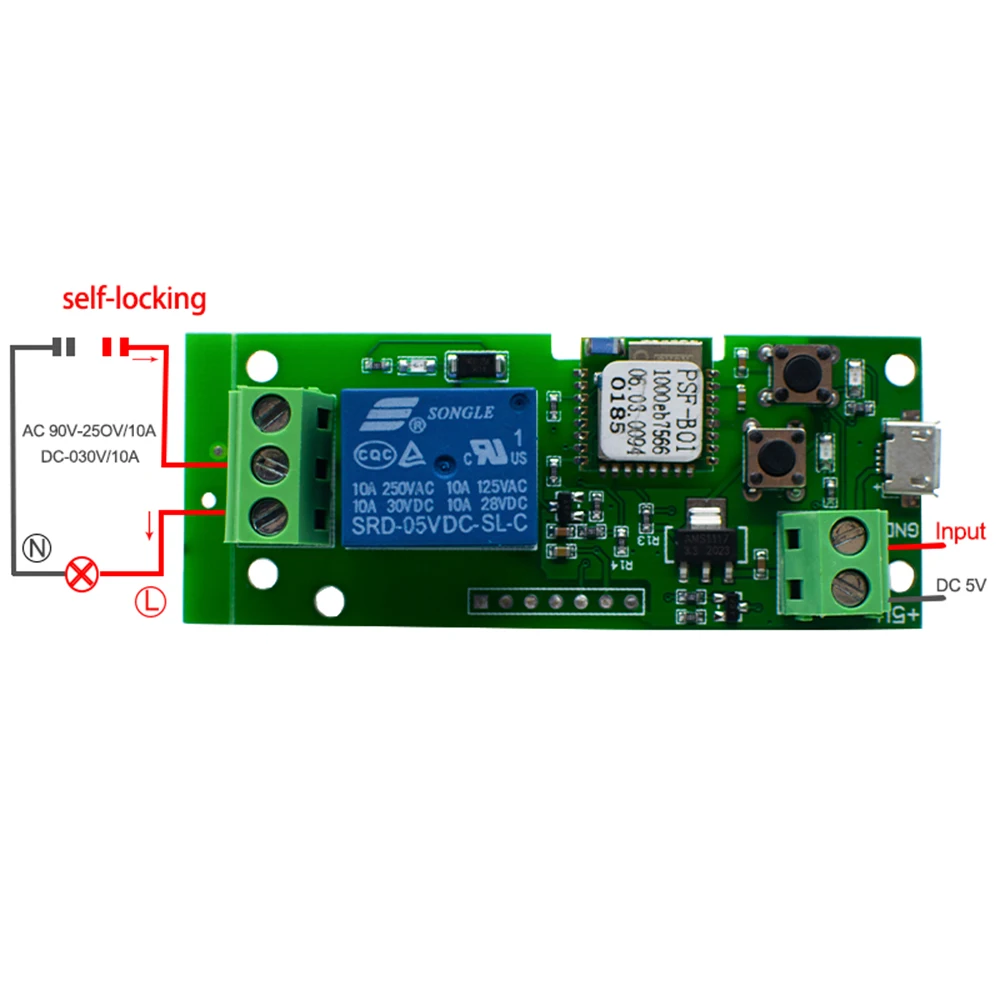 Переключатель Wi-Fi eWeLink, постоянный ток, 5 В, 12 В, 24 В, 32 В, переменный ток, 220 В, встроенныйсамоблокирующийся беспроводной релейный модуль, автоматизация умного дома для доступа к дверям