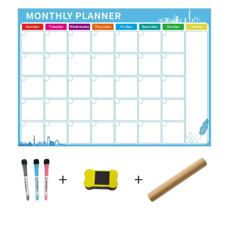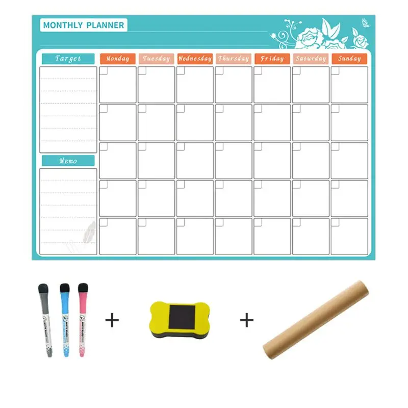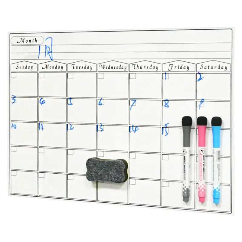 Магнитный календарь для холодильника с магнитами ежемесячная белая доска