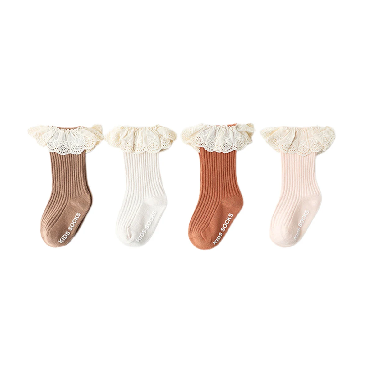 FOCUSNORMОт 1 до 3 лет, 4 цвета, детские длинные мягкие хлопковые кружевные Гольфы с цветочным рисунком и оборками для маленьких девочек, милые универсальные носки