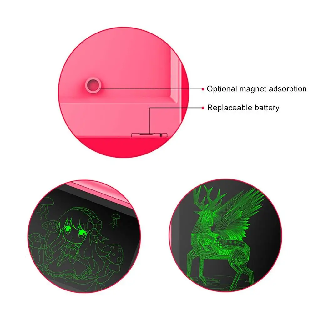 Описание:1. Размер экрана: 4,4 дюйма по размеру. ЖК-доска сделана из высококачественного АБС-пластика и с уникальной гибкой жидкокристаллической технологией для нелегкого перерыва и имеет низкое энергопотребление (CR20 [3V] кнопочный аккумулятор). Плата может работать 50000 до 100000 раз в течение длительного времени, и батарея может быть заменен.2. Подходящие случаи: ЖК-доска не токсична, экологически безопасна и безопасна для здоровья. Может использоваться как Игрушка раннего образования, доска для диктантов, расчетная бумага, доска для рисования, доска для сообщений и т. д.3. Электронная умная бумага: Используйте электронный планшет для письма, как ручка на бумаге. Вообразите написание карандашом, чернилами или ручкой и создайте линию со стилусом. Вы можете нажать кнопку для записи, рисования, размазывания, граффити и удаления всего изображения.4. Хороший подарок: подарки для детей в возрасте 3 лет и младше, можно использовать несколько раз: найти интересные, образовательные и практические подарки для мальчиков, девочек и взрослых.5. Варианты развлечений для детей: высококачественный ЖК-экран защищает глаза вашего ребенка без излучения и бликов. Лучший способ защитить ваших детей от вашего смартфона. Безопасно Наслаждайтесь блокировкой стилуса на цифровом планшете, чтобы убедиться, что он не будет потерян.Особенности:Нетоксичный, экологически чистый и здоровый.Может использоваться как Игрушка раннего образования, доска для диктантов, расчетная бумага, доска для рисования, доска для сообщений и т. д.Многоразовые, без масла, без чернил, без пыли, одна кнопка для очистки.Подходит для детей.Характеристики:Материал: пластикЦвет: черный, синий, красный и белыйРазмеры: 4,4 дюйм (ов)Тип товара: ЖК-доска для письмаИспользование: Написание и покраскаПовод: семья и офисУпаковочный лист: