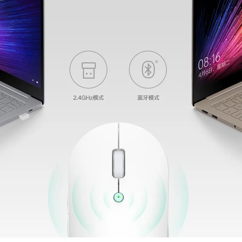 Оригинальная Двухрежимная беспроводная мышь Xiaomi Тихая версия оптоэлектронная Bluetooth 2,4G 1300 точекдюйм УФ кожа ткань удобный захват
