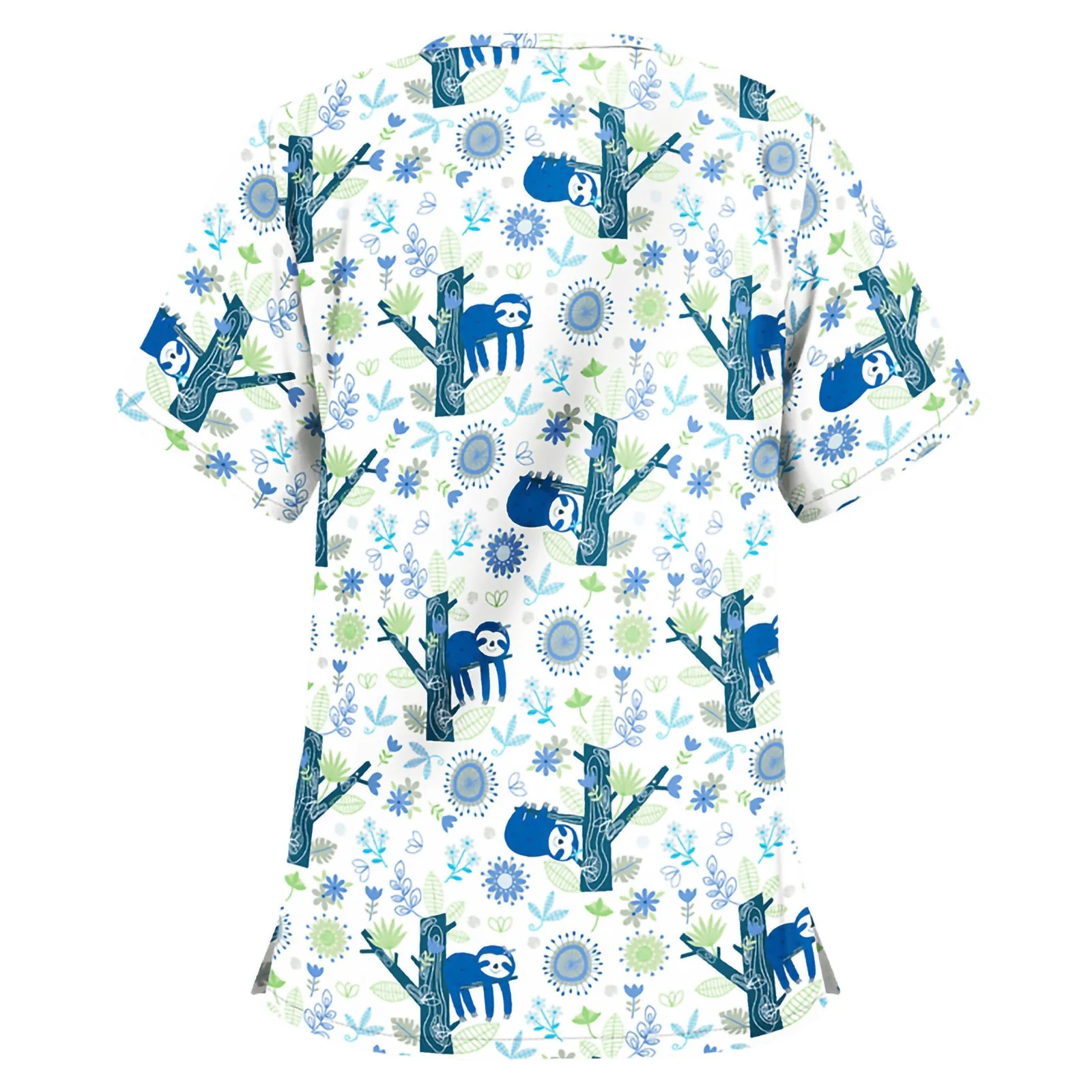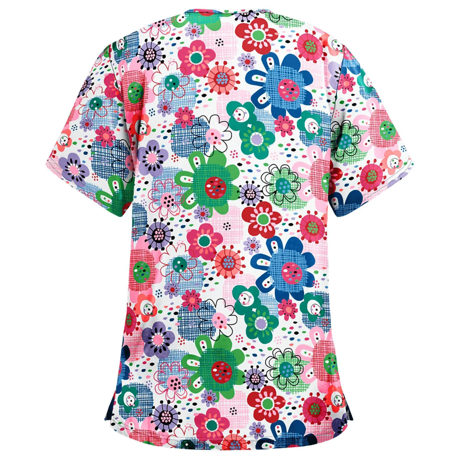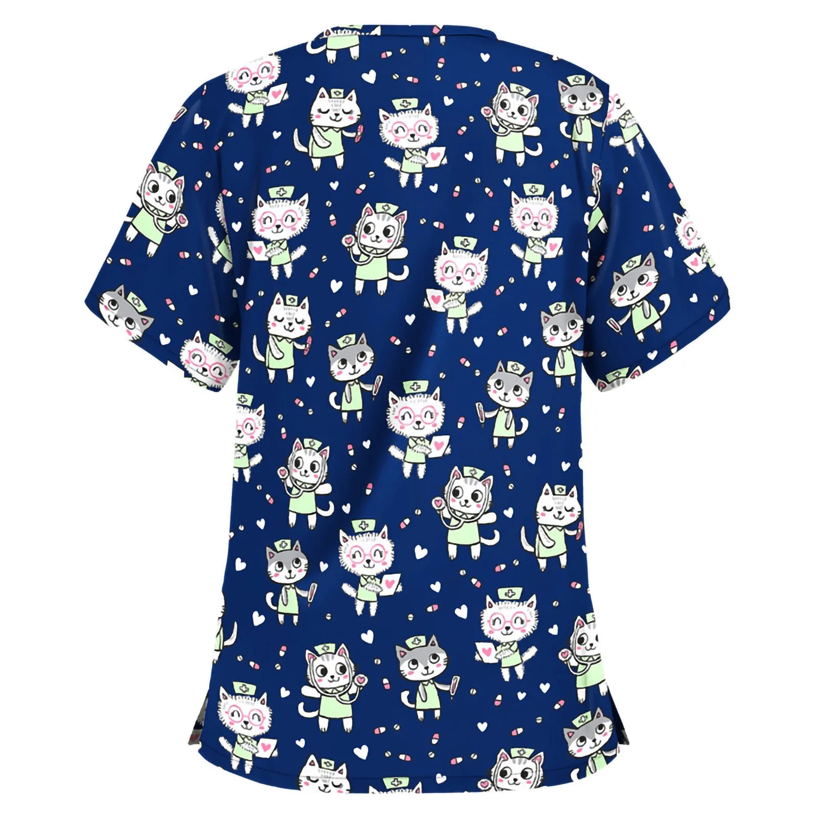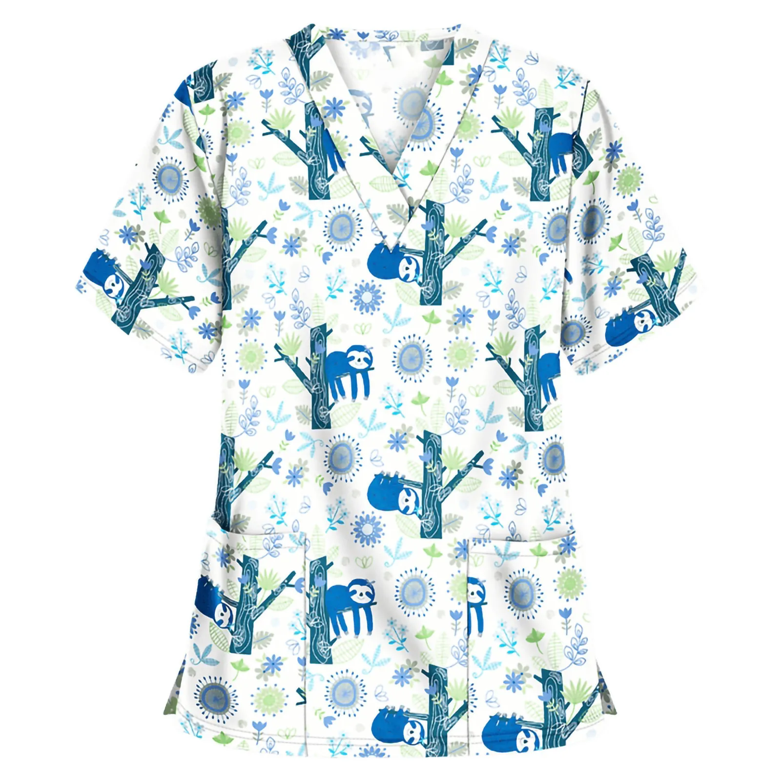 Женская рождественская футболка с коротким рукавом и v-образным вырезом, Рабочая форма, топы с мультяшным принтом, женская повседневная одежда