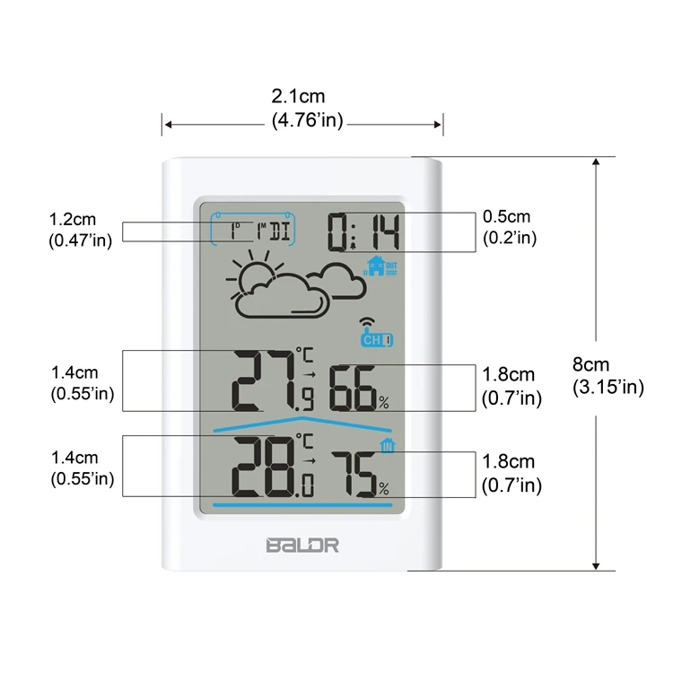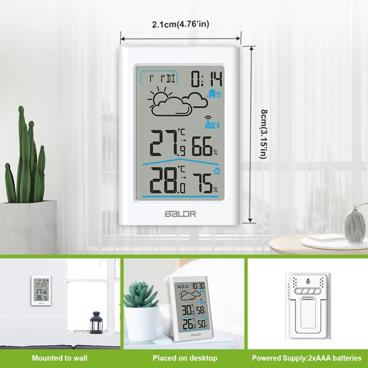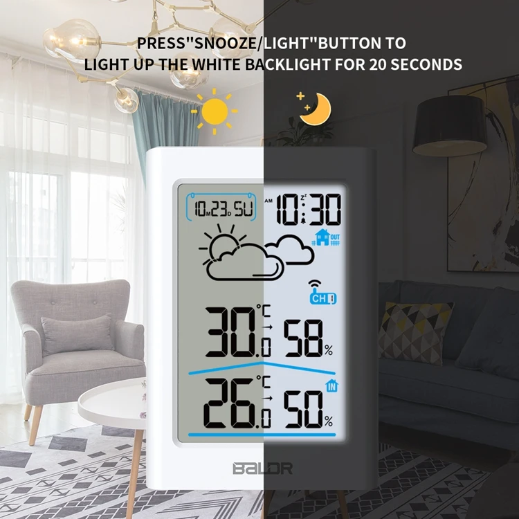 Baldr беспроводная уличная метеостанция с термометром, гигрометром, ЖК-дисплеем, цифровым будильником, часами и датчиком прогноза погоды