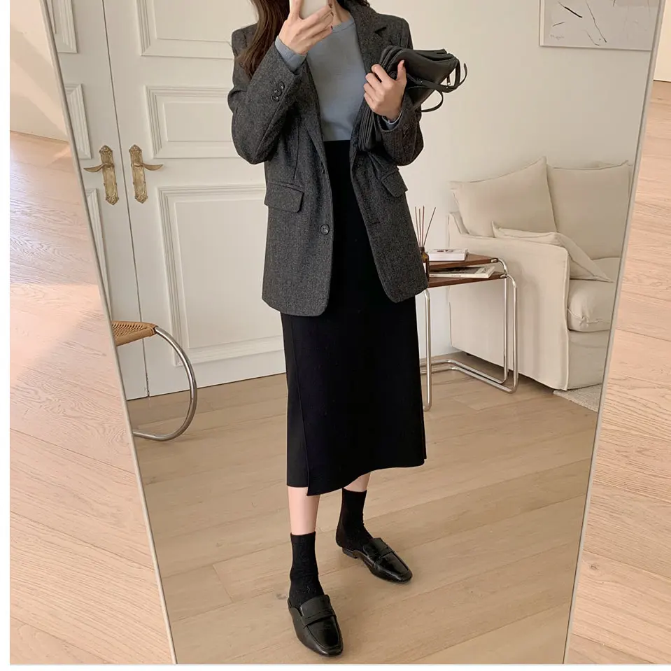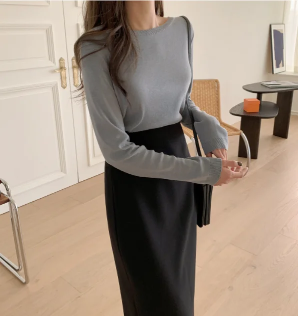 Женская юбка в стиле Харадзюку, однотонная длинная юбка с высокой талией в Корейском стиле на осень и зиму, Новинка