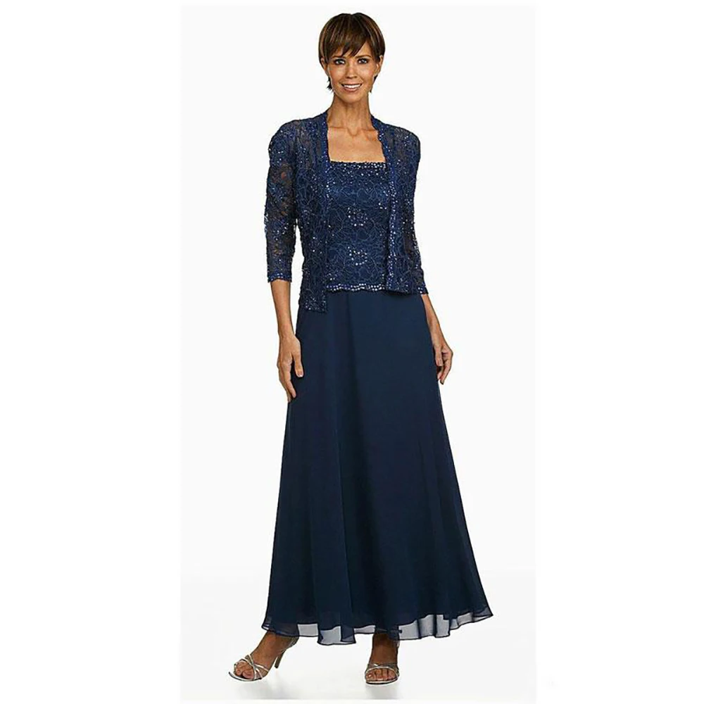 Женское шифоновое платье для матери невесты, официальное кружевное платье-трапеция из трех частей, без бретелек, на заказ