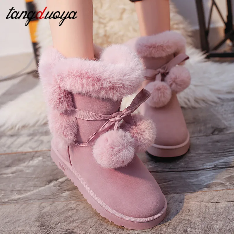 Розовые женские зимние сапоги, зимние теплые плюшевые сапоги, женские ботильоны, женская обувь, повседневная зимняя женская обувь с мехом botas mujer
