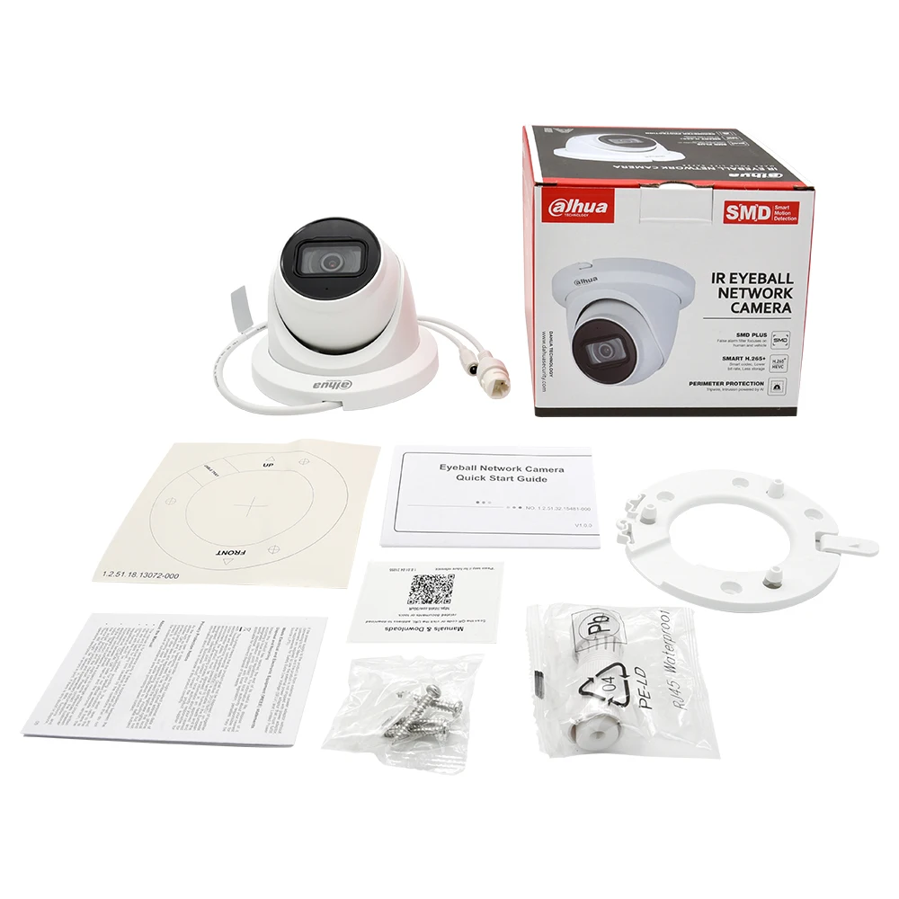 5 mp Lite infrared fixed focus eyeball network camera> 5 mp, 1/2.7 "CMOS image sensor, low illumination, high image definition> Output 2688×1520 (2688×1520)@ 25/30 fps, and support Max. 5 mp (2592×1944) @ 20 fps> H.265 codec, high compression rate, extremely low bit rate>Built-in infrared LED, Max infrared distance: 30 meters> ROI, smart H/H. 265 years, flexible encoding, suitable for various bandwidth and storage environments>Rotation mode, World Development Report, 3D medical advice, HLC, baseline contour, digital watermark, suitable for various surveillance scenarios> Intelligent detection: intrusion, trip net> Anomaly detection: motion detection, video tampering, no SD card, SD card, SD card error, network disconnection, IP conflict, illegal access, voltage detection> Support Max. 256 GB micro SD card with built-in microphone> 12V DC/Slope power support> IP67 protection
