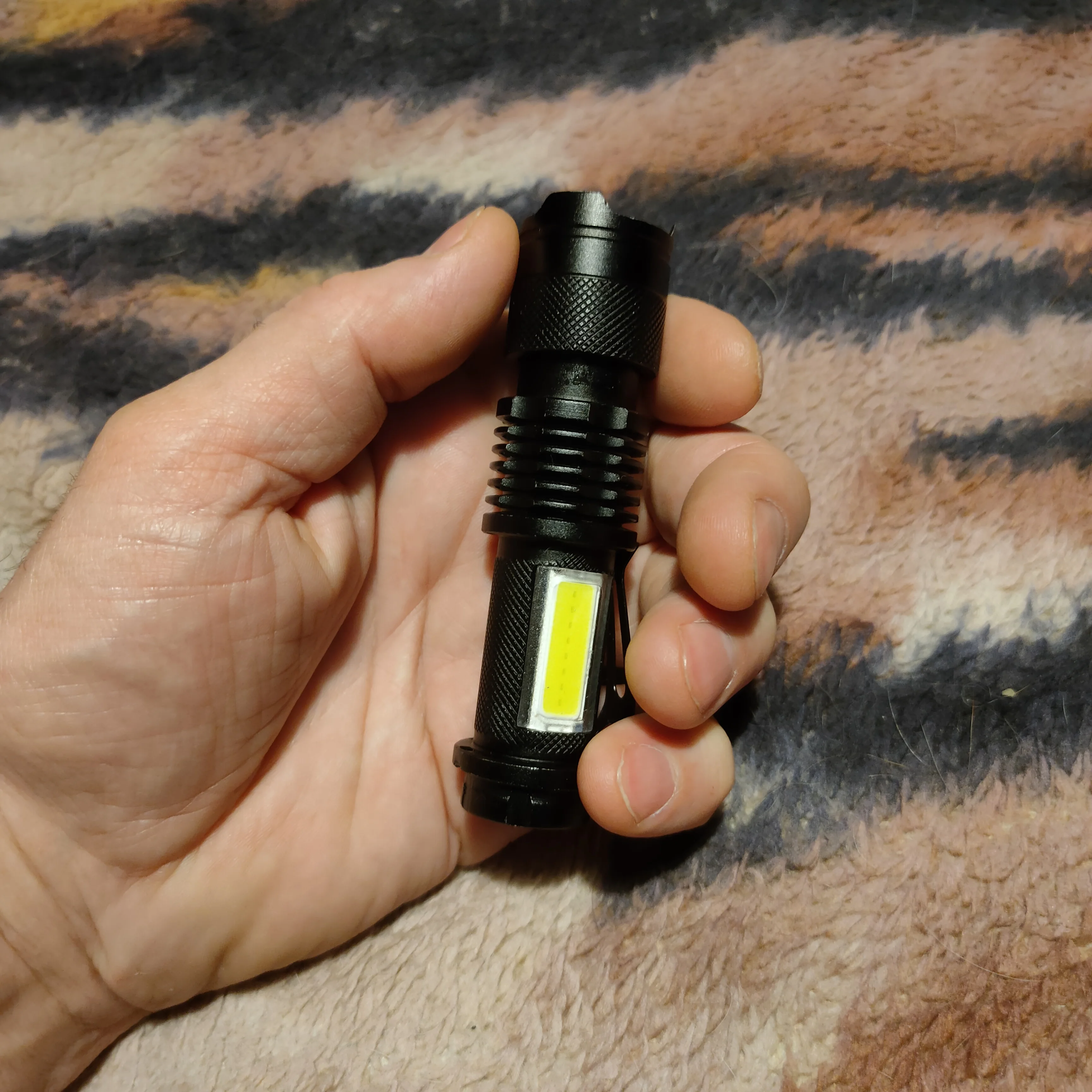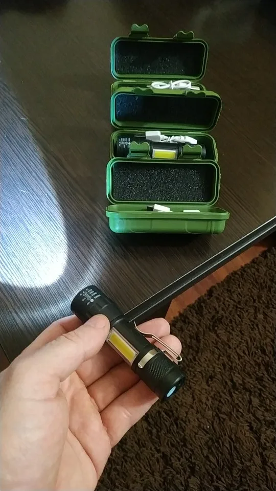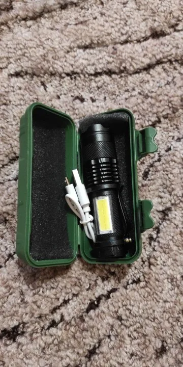 Очень хорошее освещение, ничего не весит, батарея длится долго, что если коробка немного потрепанная, но фонарик невероятный и очень маленький
