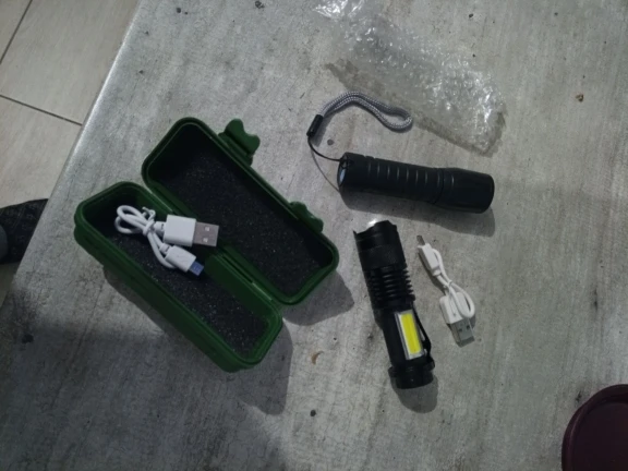 Me han encantado, son pequeñas, pero super potentes, tienen 3 posiciones de luz común, intermitente, y led a un costado. Además de tener un zoom 3 de posiciones también al estirar la punta de la interna , luz más abierta, media y cerrada. Fácil de llevar viene con su cajita, trae su cargador USB, no es a pila, eso está muy bien y práctico.La recomiendo