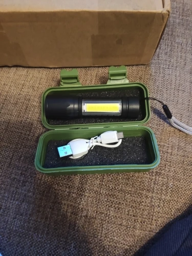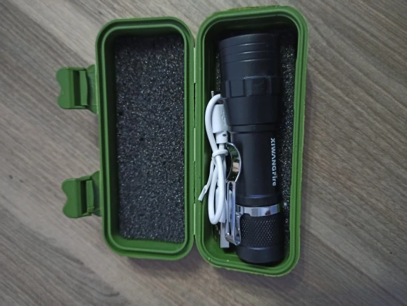 Отличный фонарик, коробка плохая, защёлки приехали уже не рабочими, так не переплачивайте за коробку.