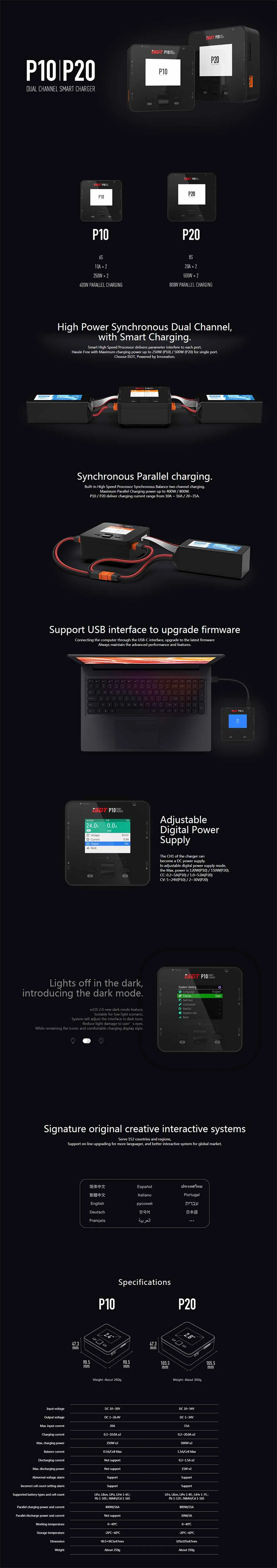 ISDT P20 500 Вт X2 20A x2 Двухканальное балансирующее зарядное устройство для аккумулятора Lilon LiPo LiHV NiMH LipoPb Замена аккумулятора DIY аксессуары