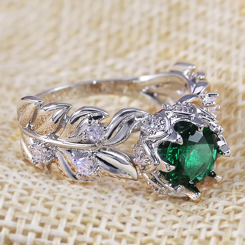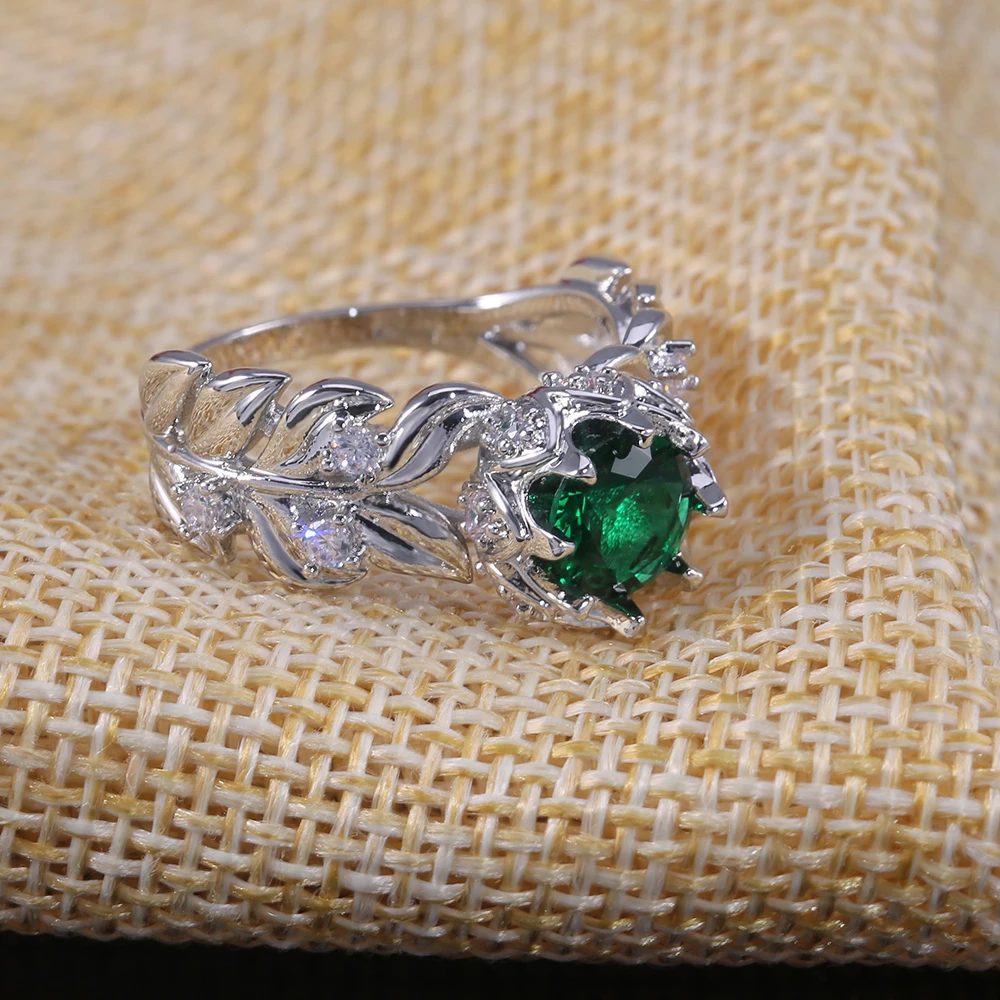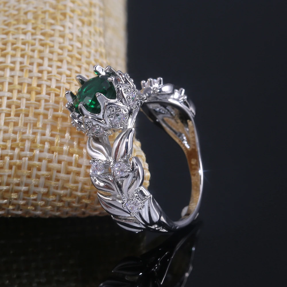 Huitan Роскошные обручальные кольца с узором в виде пера для женщин с ослепительным зеленым кубическим цирконием кольцо с зубцом женское Ювелирное кольцо