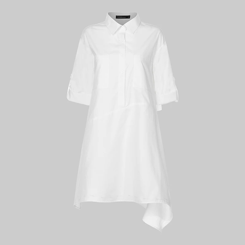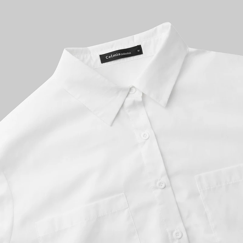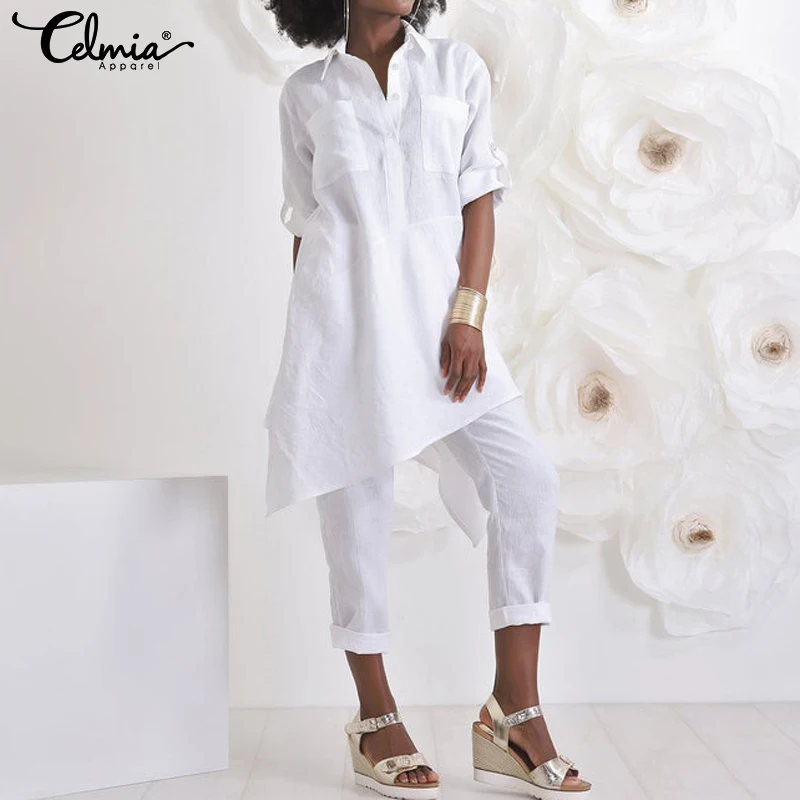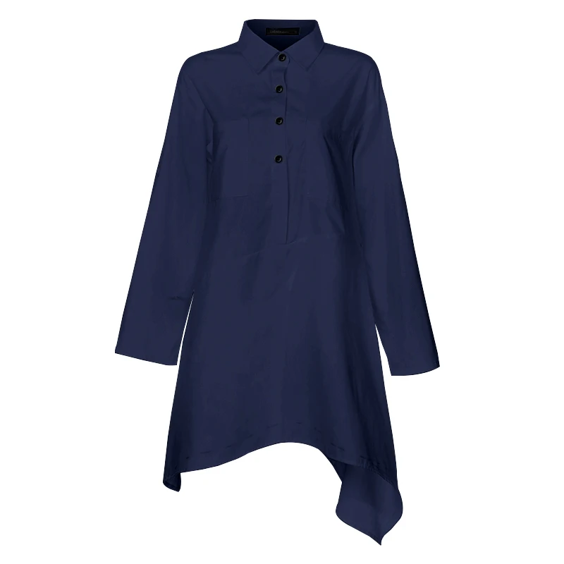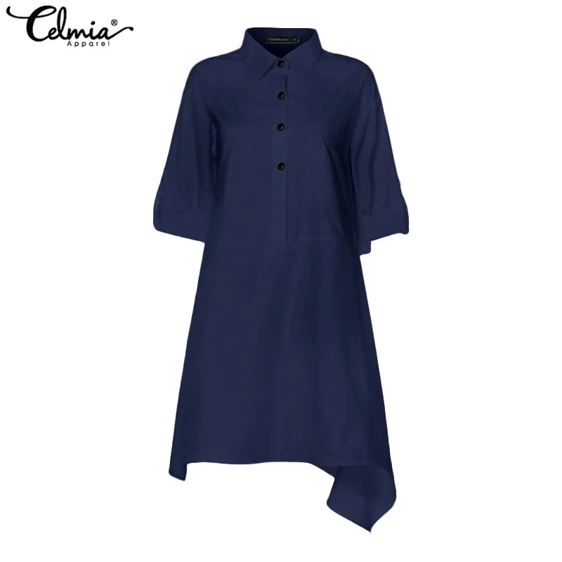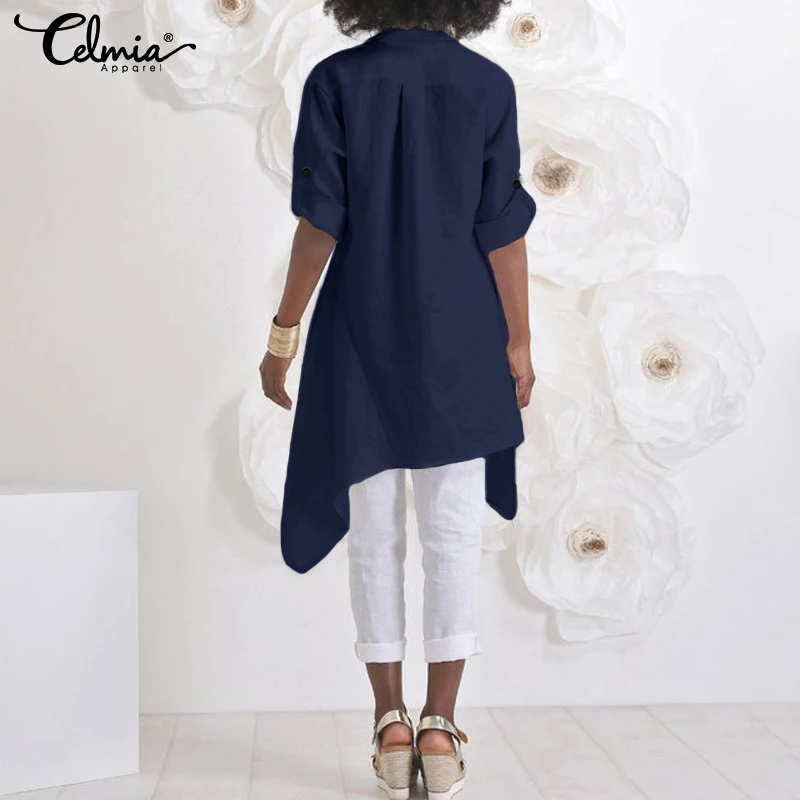 Женская Асимметричная длинная рубашка Celmia, осень 2022, блузки с длинным рукавом, повседневные Туники на пуговицах, топы, свободные женские блузы