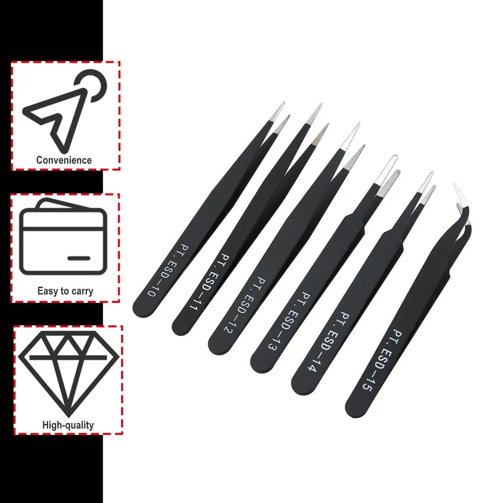 2016 новейший 6 шт./компл. портативный размер устойчив к коррозии Антистатический пинцет для ремонта электронных инструментов для технического обслуживания черный