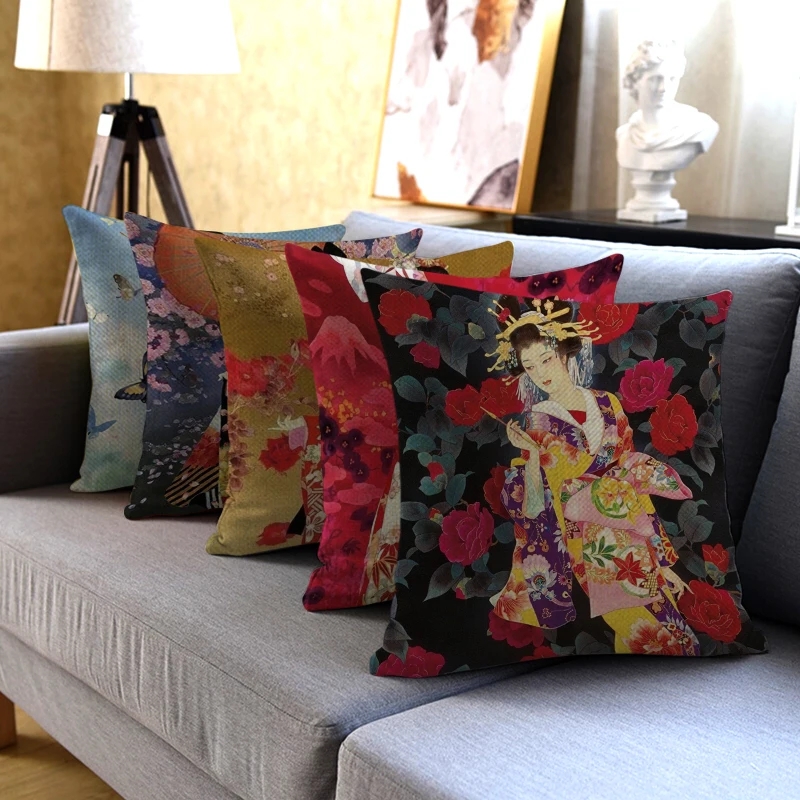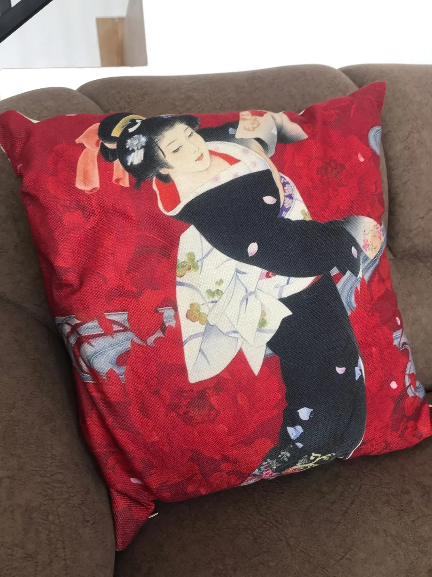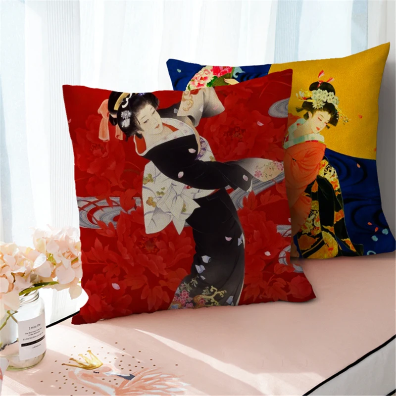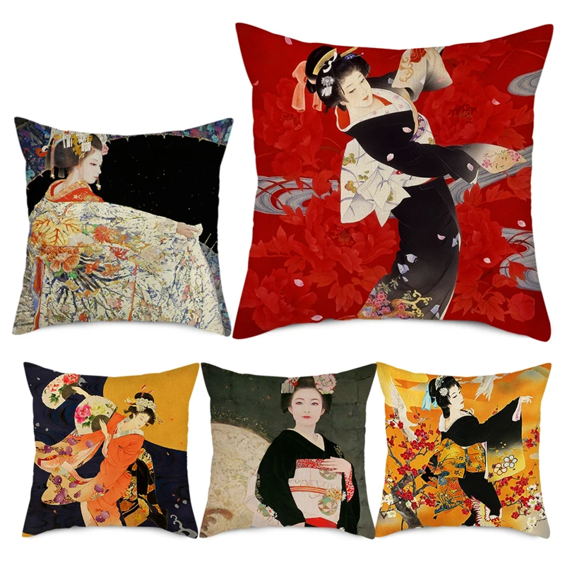 Fuwatacchi наволочки с японским принтом гейши льняные Роскошные Портретные декоративные наволочки для дома декоративные наволочки для подушки