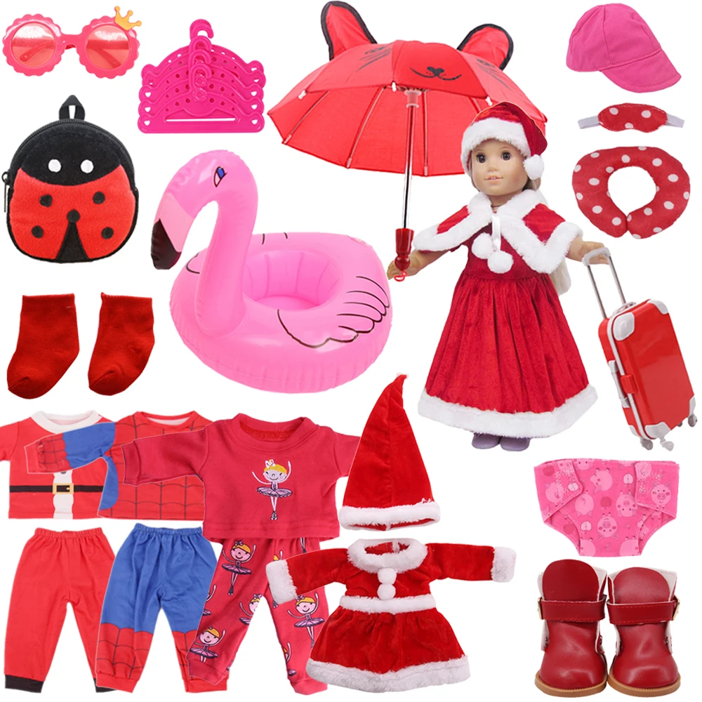 Одежда для кукол Красная серия с рисунком Фламинго Рождественская одежда Обувь для 18 дюймов американская и 43 см Кукла реборн новорожденная игрушка для девочек