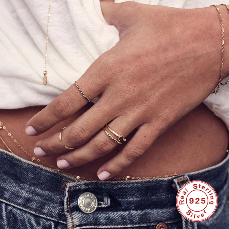 100% S925 стерлингового серебра Anillos минималистичный CZ палец ко...