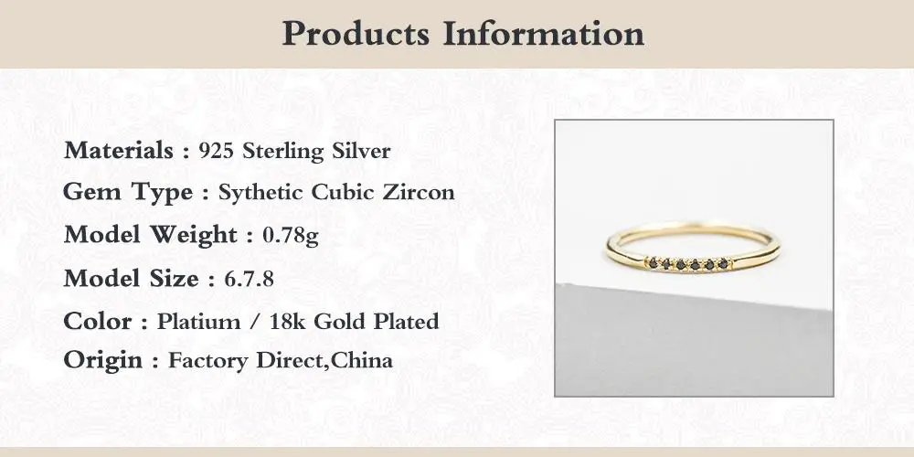 Мини ряд черных бриллиантов Кольцо 925 стерлингового серебра класса...
