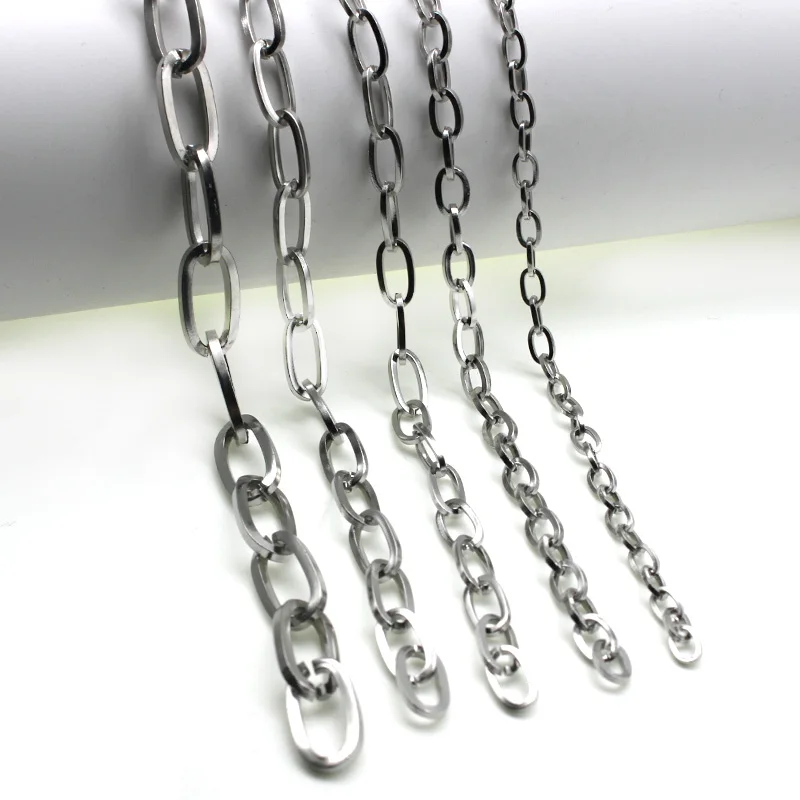 Никогда не выцветает цепочка из нержавеющей стали плоские овальные звенья объемные цепочки DIY цепочка для кошелька ювелирные изделия ожерелья Изготовление аксессуаров ручной работы