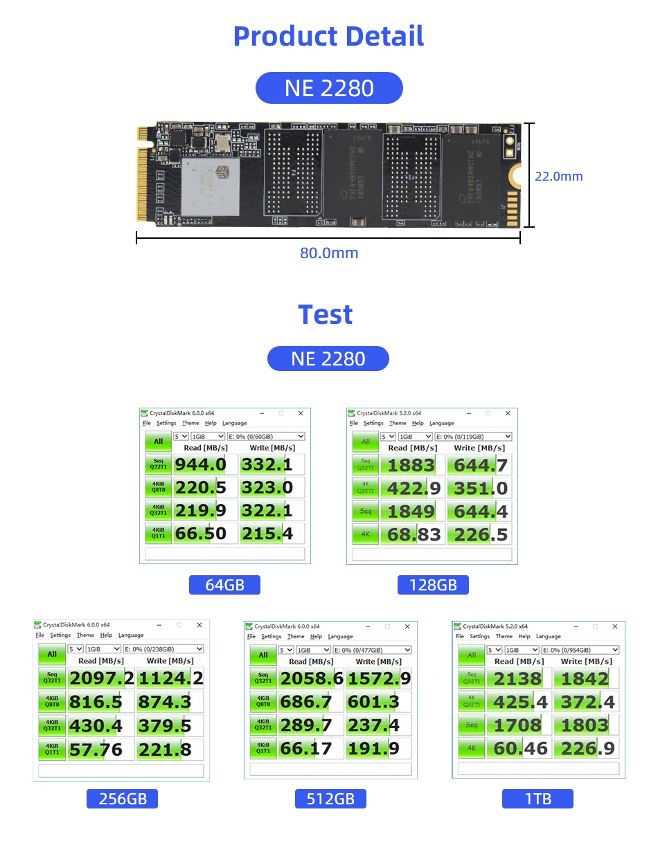 Примечание: скорость указана только для справки. Скорость SSD будет зависеть от многих факторов, таких как тип интерфейса, класс компьютерного оборудования, компьютерная система и Тестовая система.