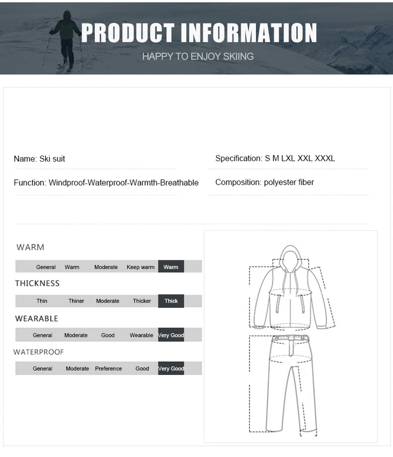 Лыжный костюм зимняя мужская и женская лыжная куртка теплая ветрозащитная утолщенная сноуборд брюки водонепроницаемый горнолыжный костюм