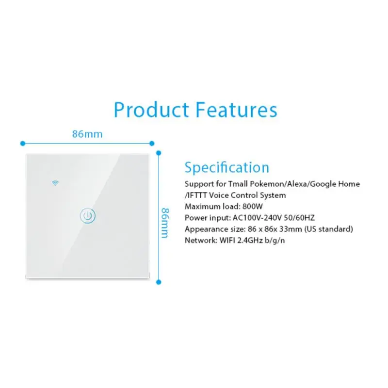 Сенсорный экран из закаленного стекла этого умного переключателя чувствителен к касанию управления, прочный стеклянный материал премиум-класса обеспечивает до 20 миллионов сенсорных цифр благодаря нашему тщательному тестированию. Он водонепроницаемый, влагостойкий, устойчив к царапинам.