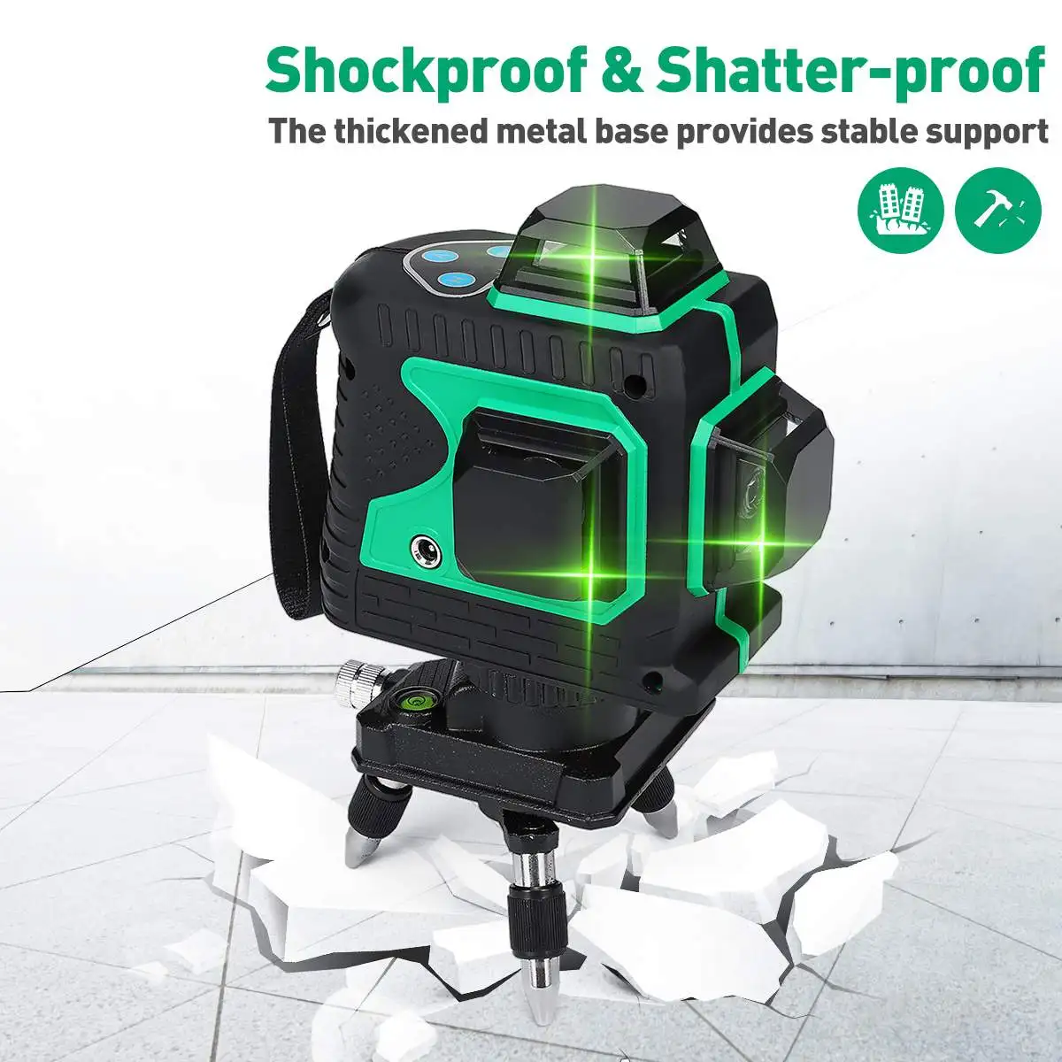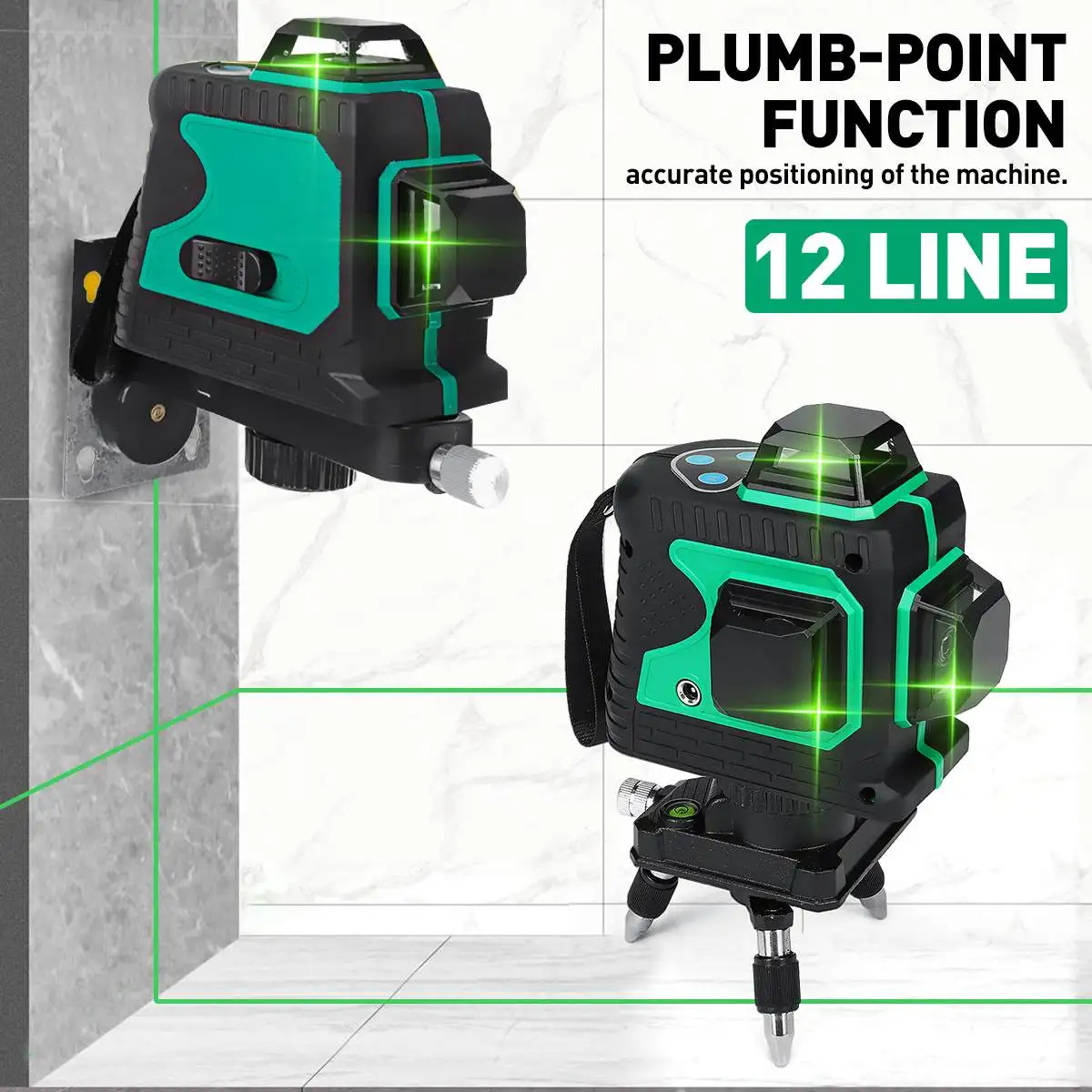 Лазерный 3D уровень с зеленым лазером, 12 линий, профессиональный самовыравнивающийся на 360 градусов, горизонтальный, вертикальный, зеленый лазерный луч, строительные измерительные инструменты