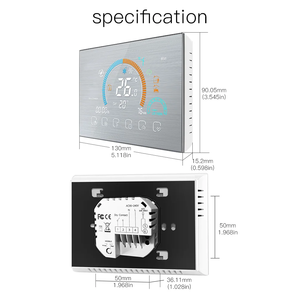1. Функциональная система отопления: управление с помощью протокола Tuya Wi-Fi включает в себя для интеллектуального водного пола, электрического отопления и водного газового котла, обеспечивает максимальное и всестороннее удобство для вашей умной жизни при температуре дома, И легко контролировать температуру в помещении и влажности на открытом воздухе От метеостанции на термостате, фокусируясь на создании простых, человеческих, восхитительных ощущений для вашего дома, и этот вид цвета подходит для различных стилей украшения. (Примечание: текущая нагрузка составляет 5А для нагрева воды и газового котла, 16А для электрического напольного отопления.)