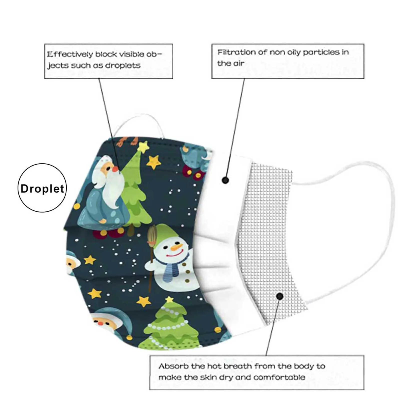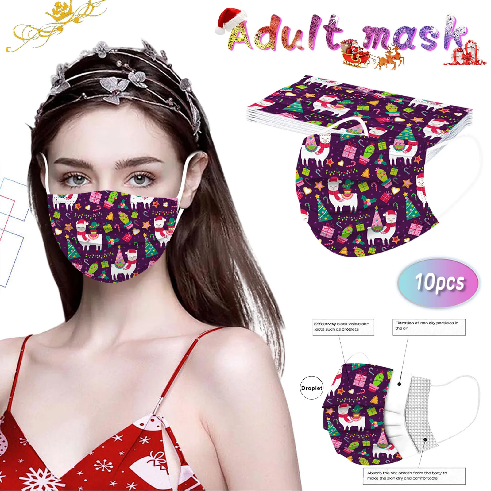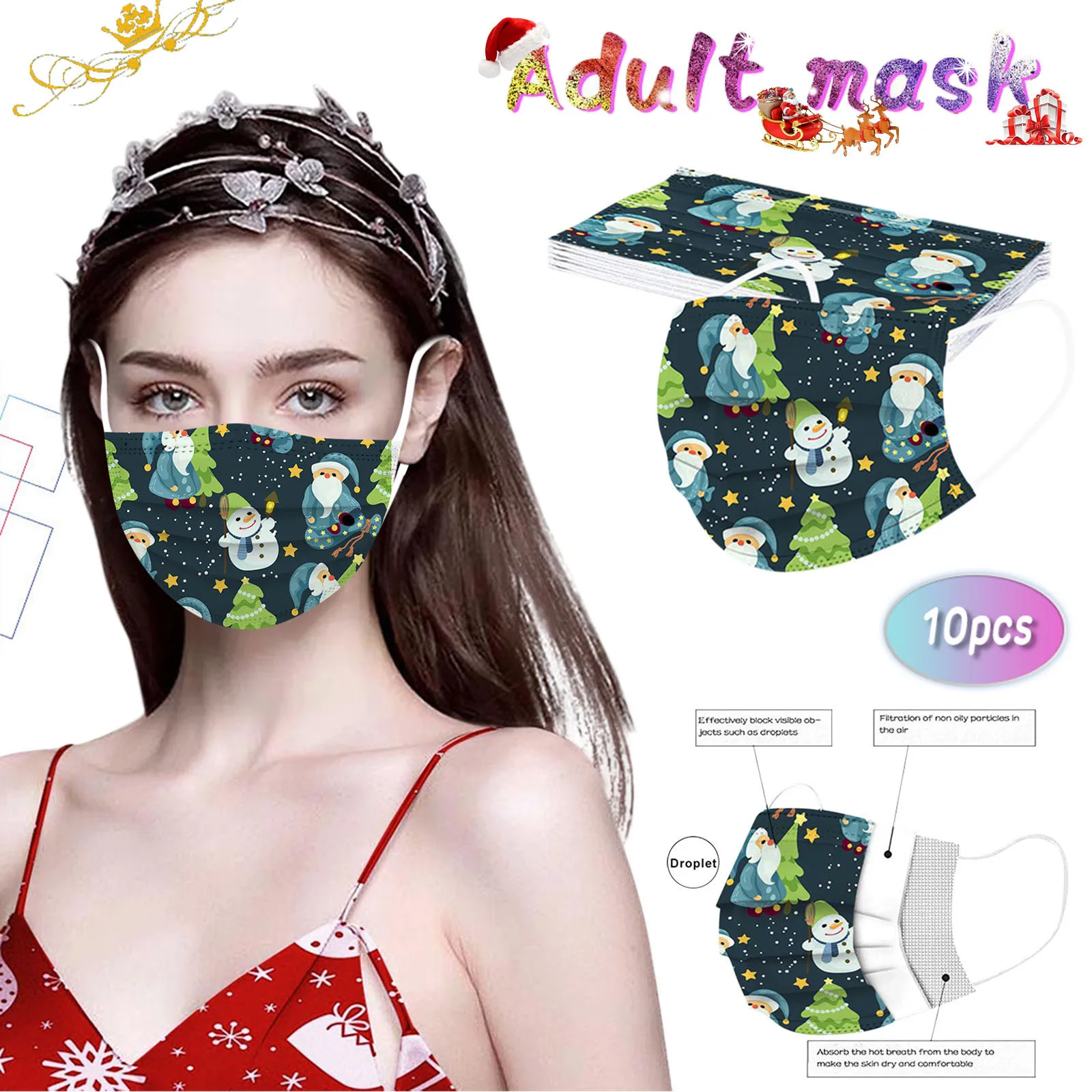 10 шт. взрослых уход за кожей лица-маска Рождество крышку рот дышащий одноразовые маски с рождественским принтом серьги рот Шапки маска Тканевая туши для ресниц маска