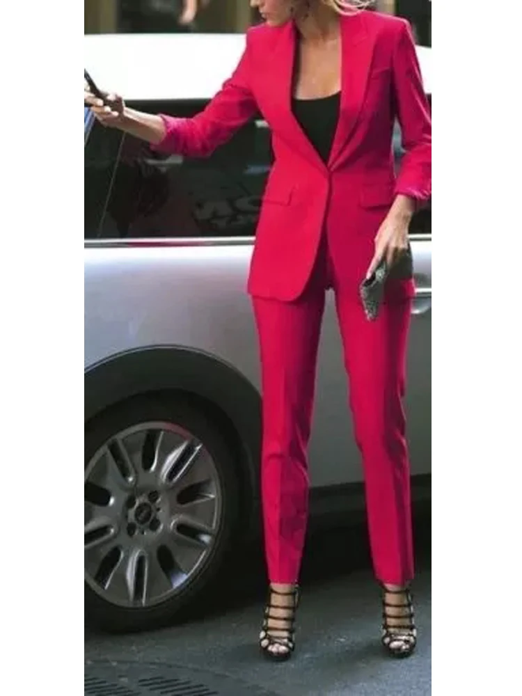 Женский костюм-двойка, пиджак с лацканами и брюки, цвета фуксии
