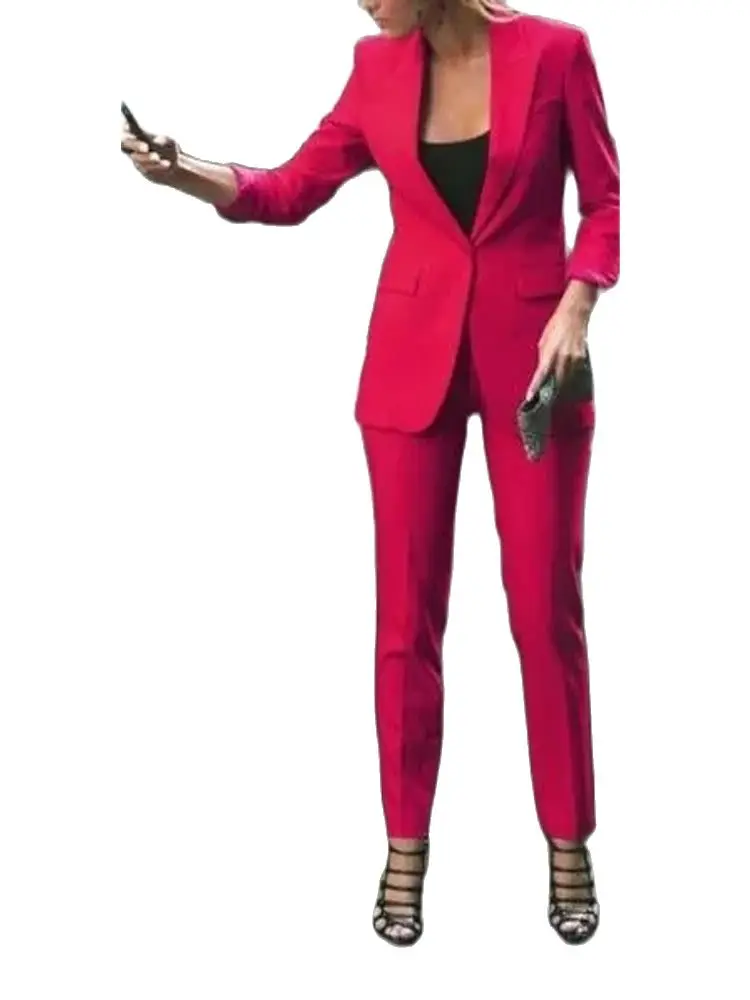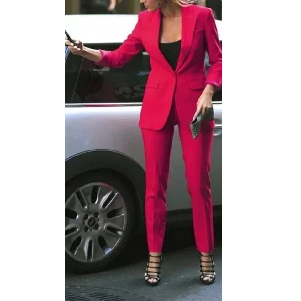Однобортный женский пиджак + брюки, красный женский деловой костюм,...