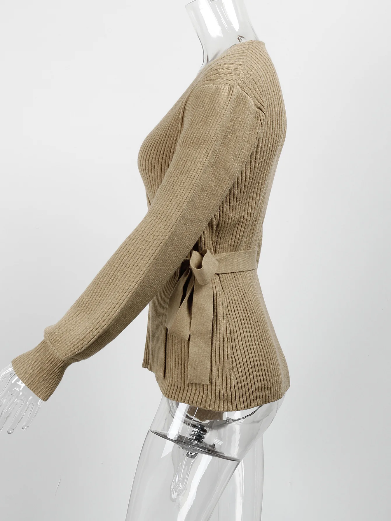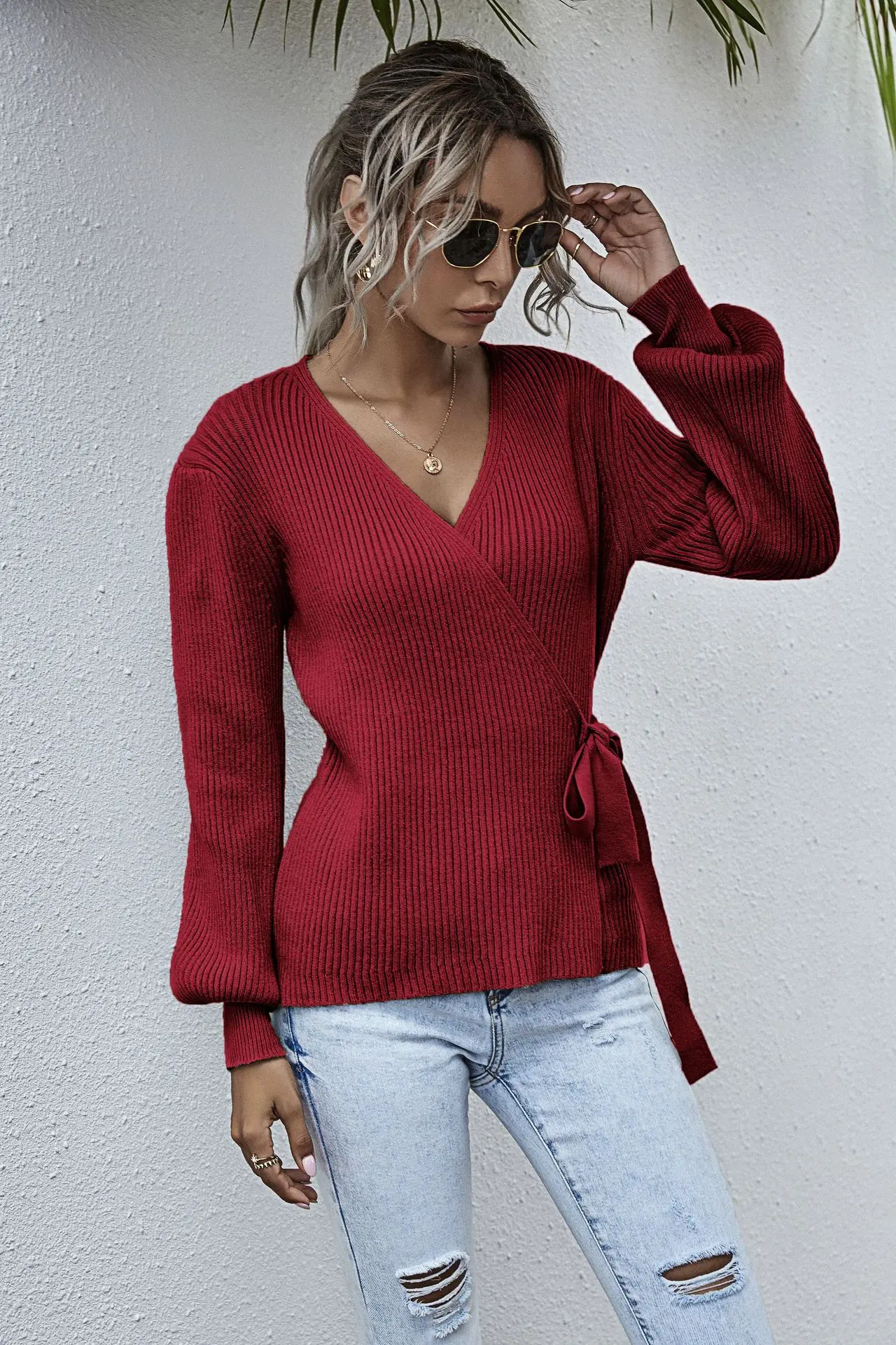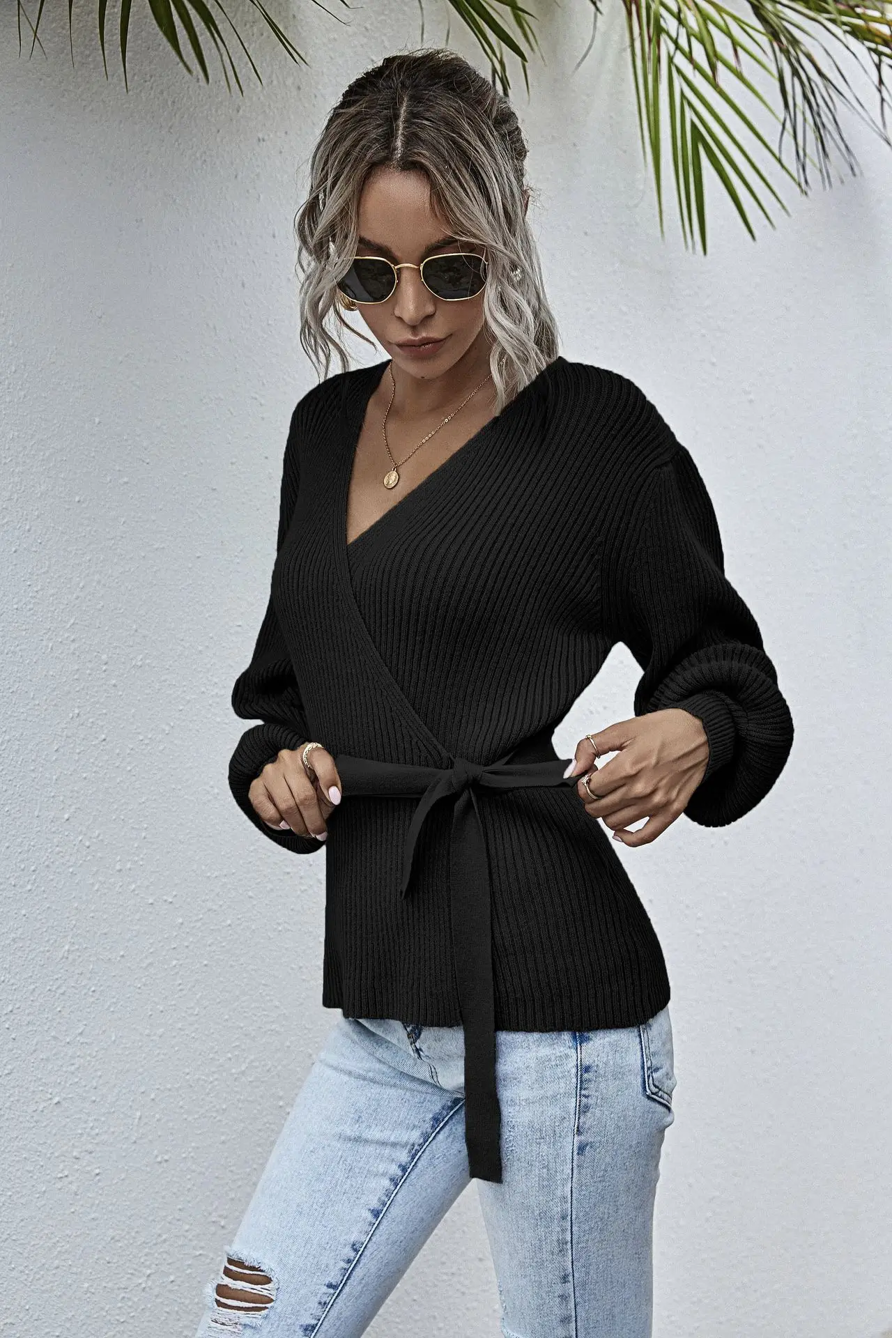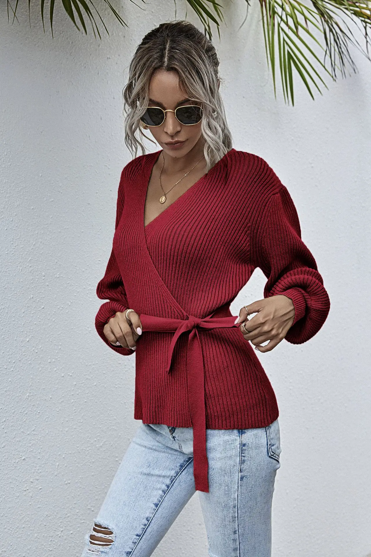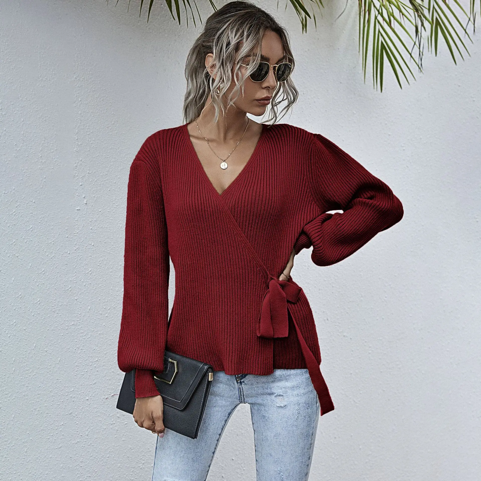 Элегантные женские повседневные вязаные свитера с v-образным вырезом и поясом на завязках; Однотонные рабочие свитера; женские свитера Новинка зимы 2020 года; Женские свитера