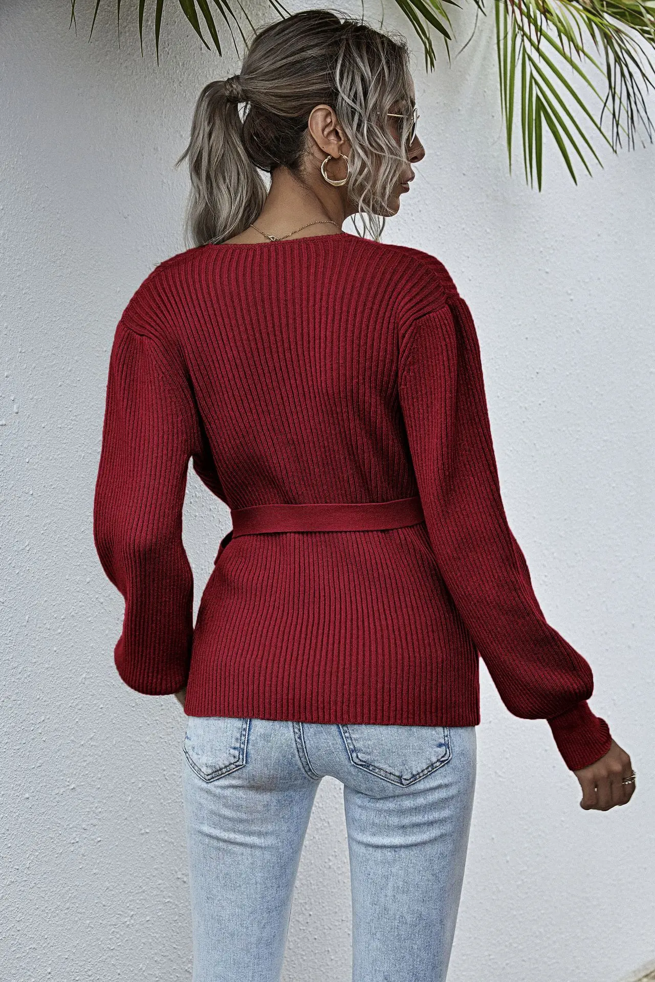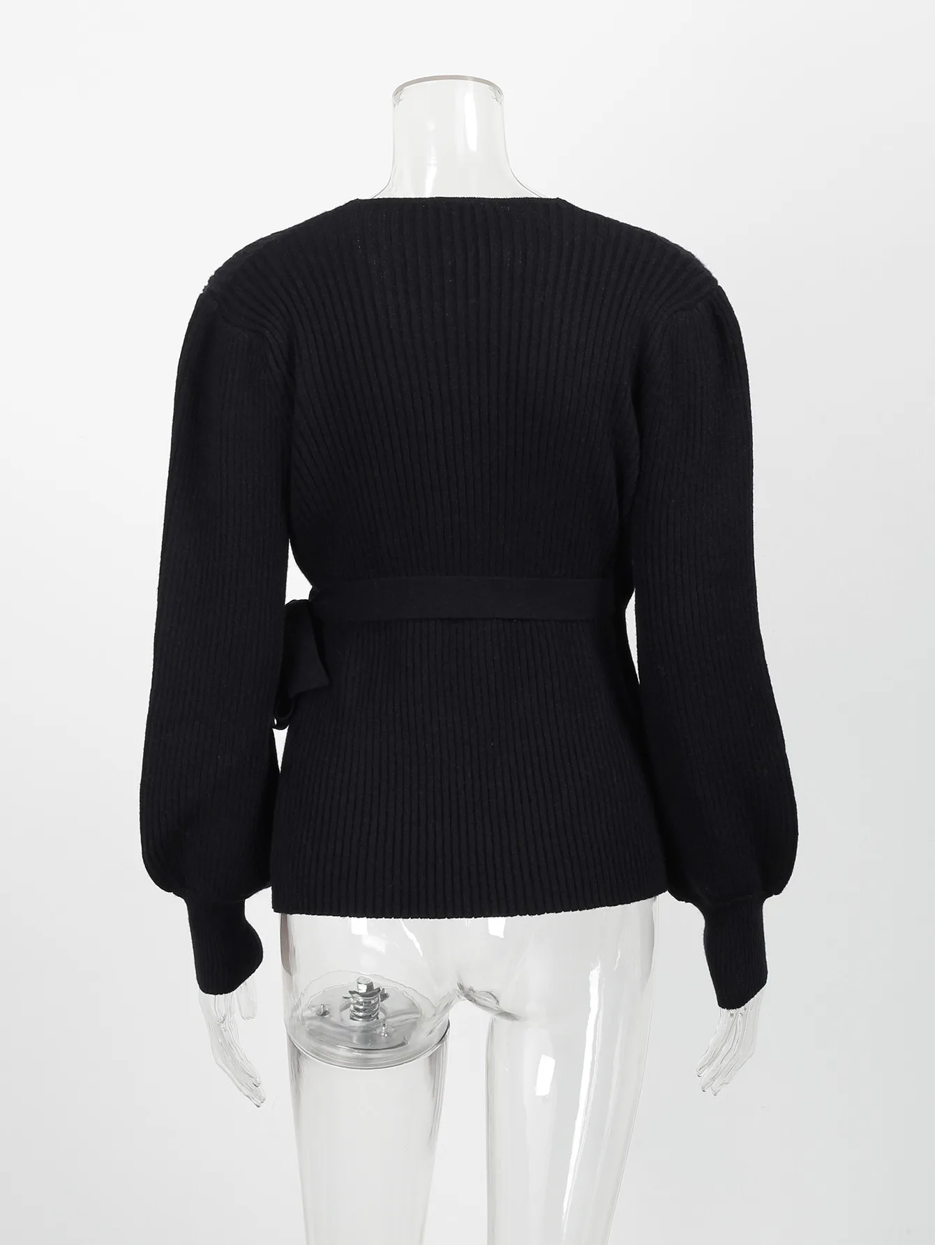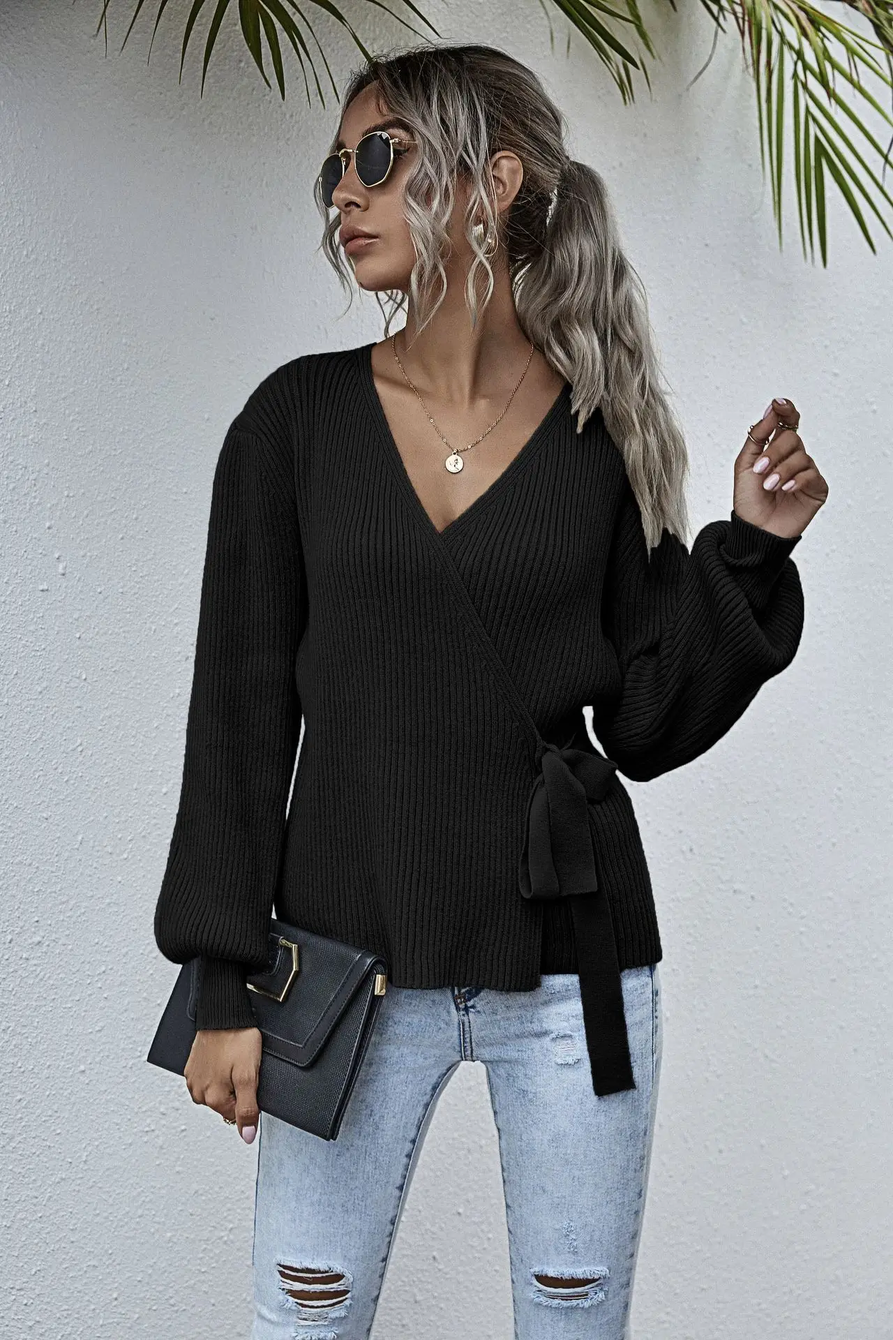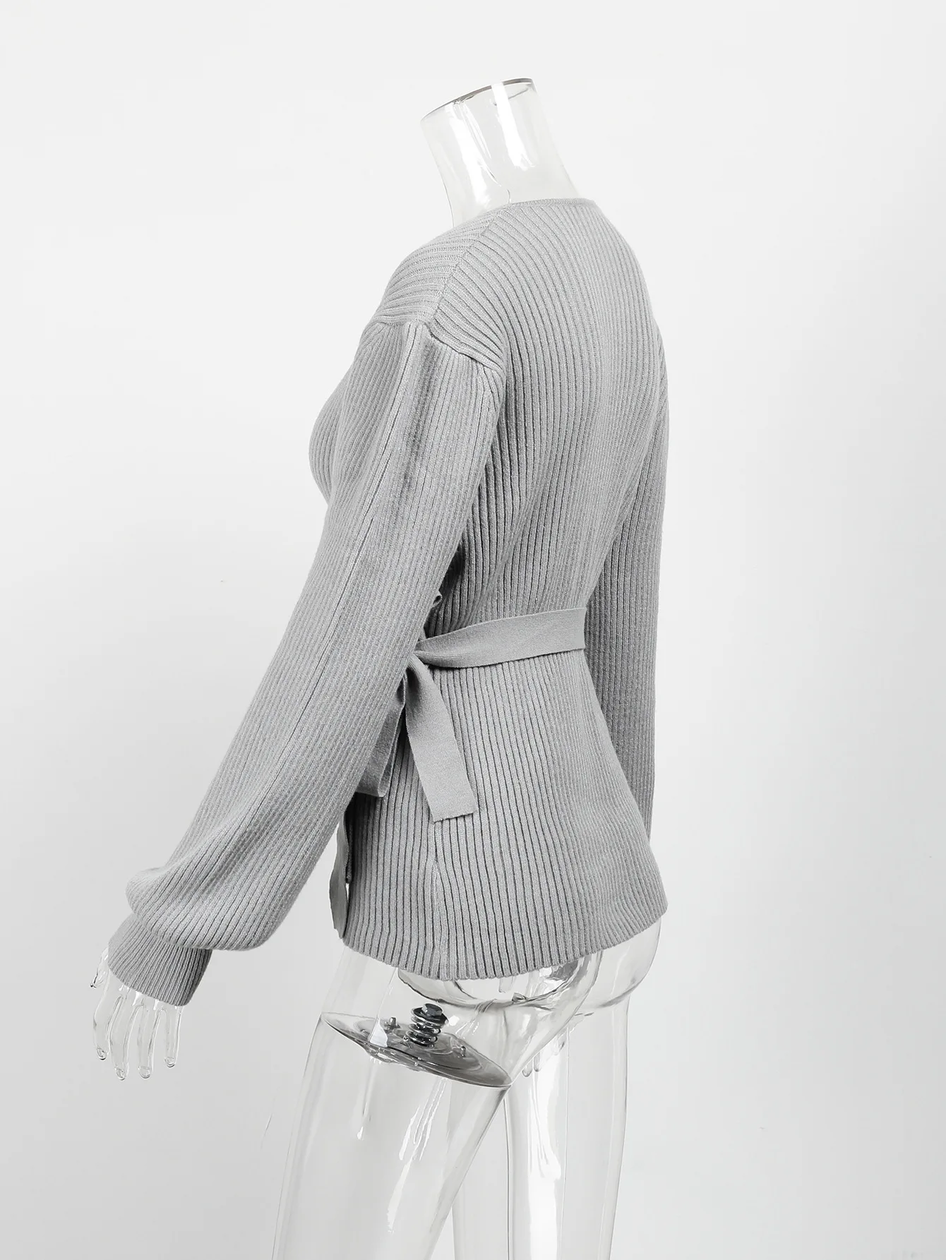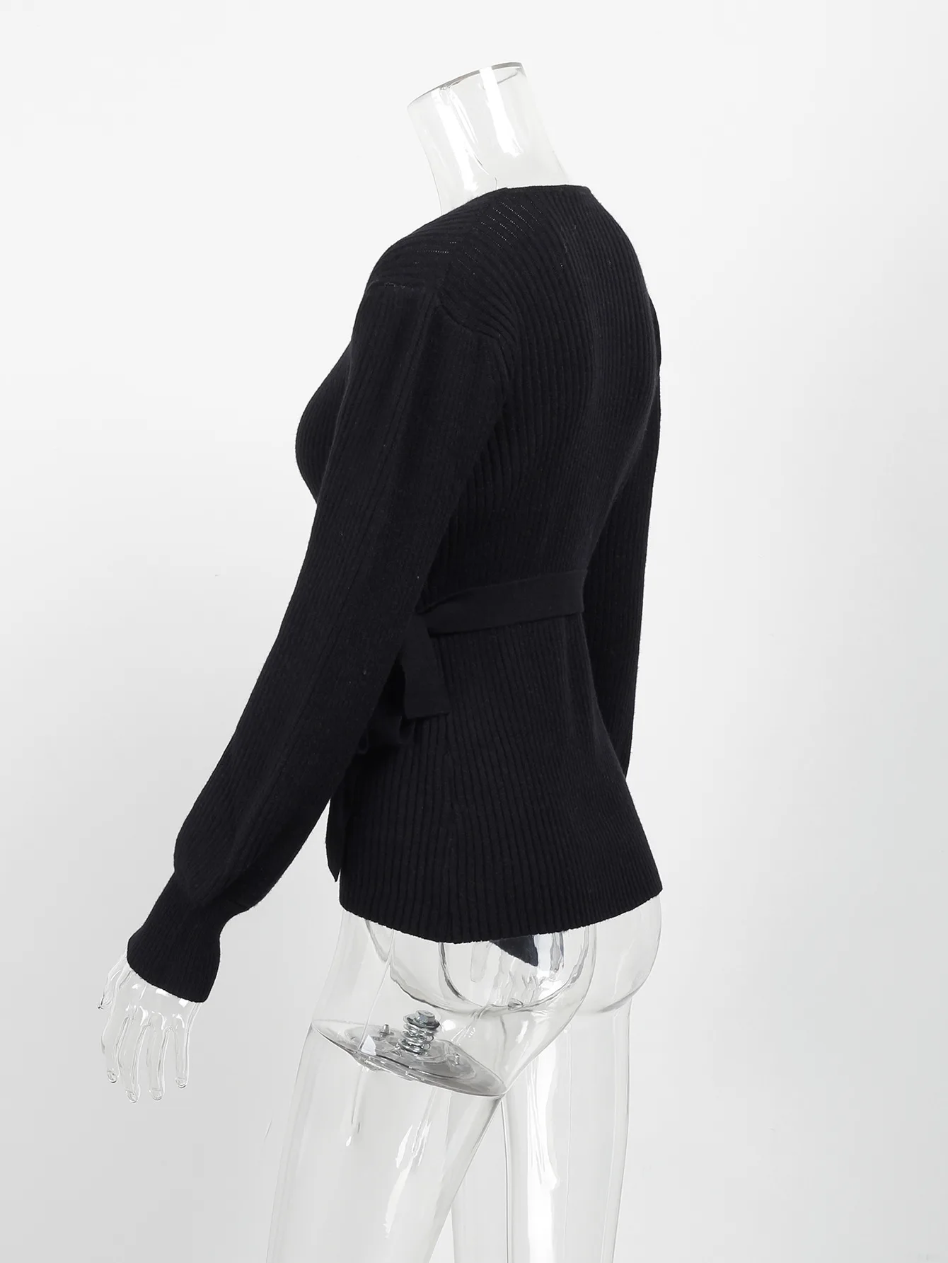 Элегантные женские повседневные вязаные свитера с v-образным вырезом и поясом на завязках; Однотонные рабочие свитера; женские свитера Новинка зимы 2020 года; Женские свитера