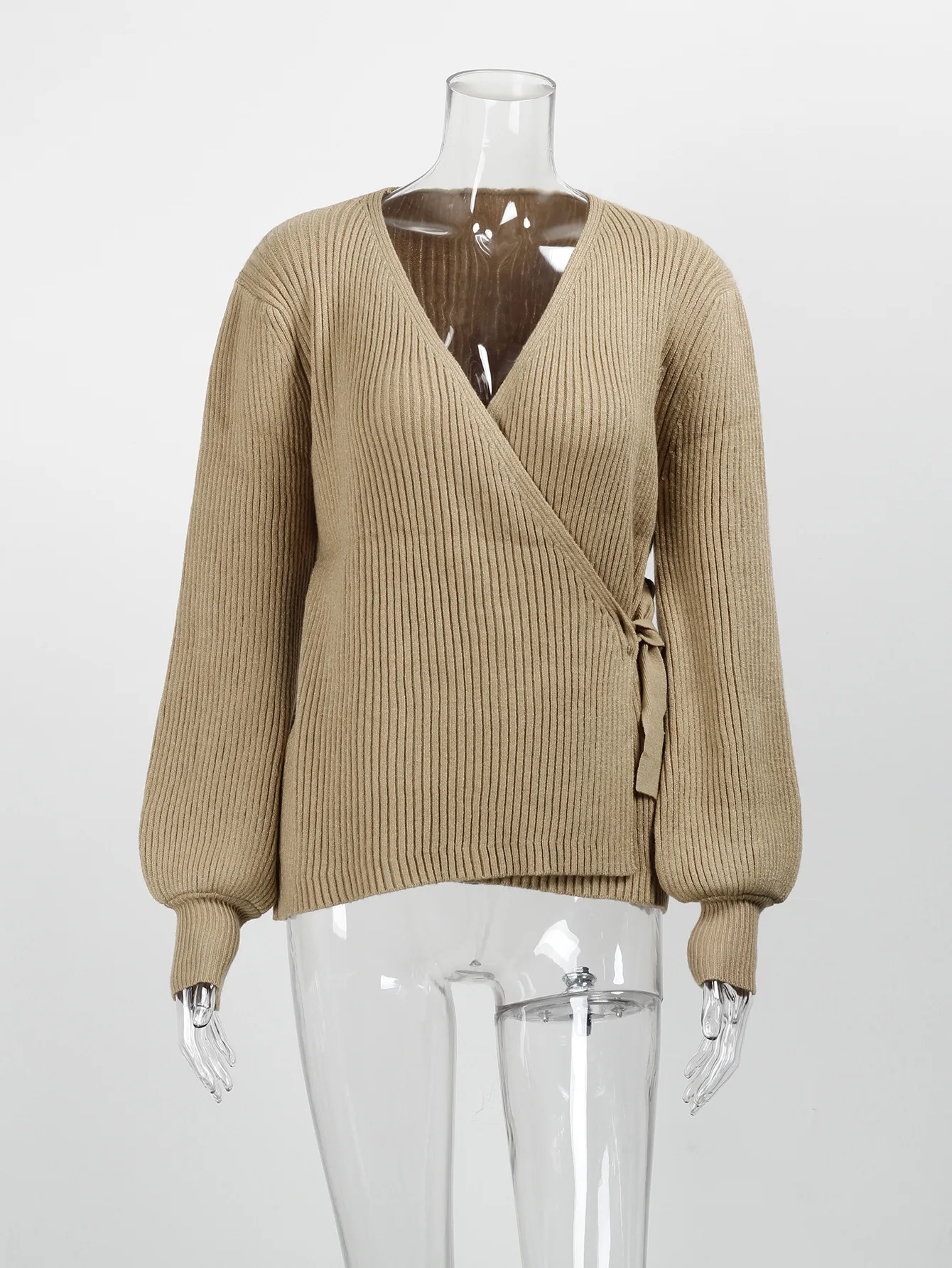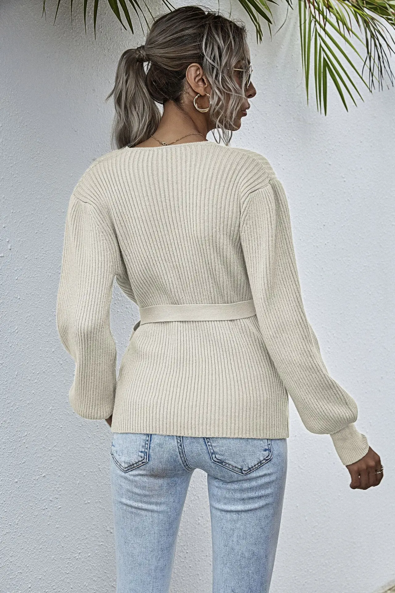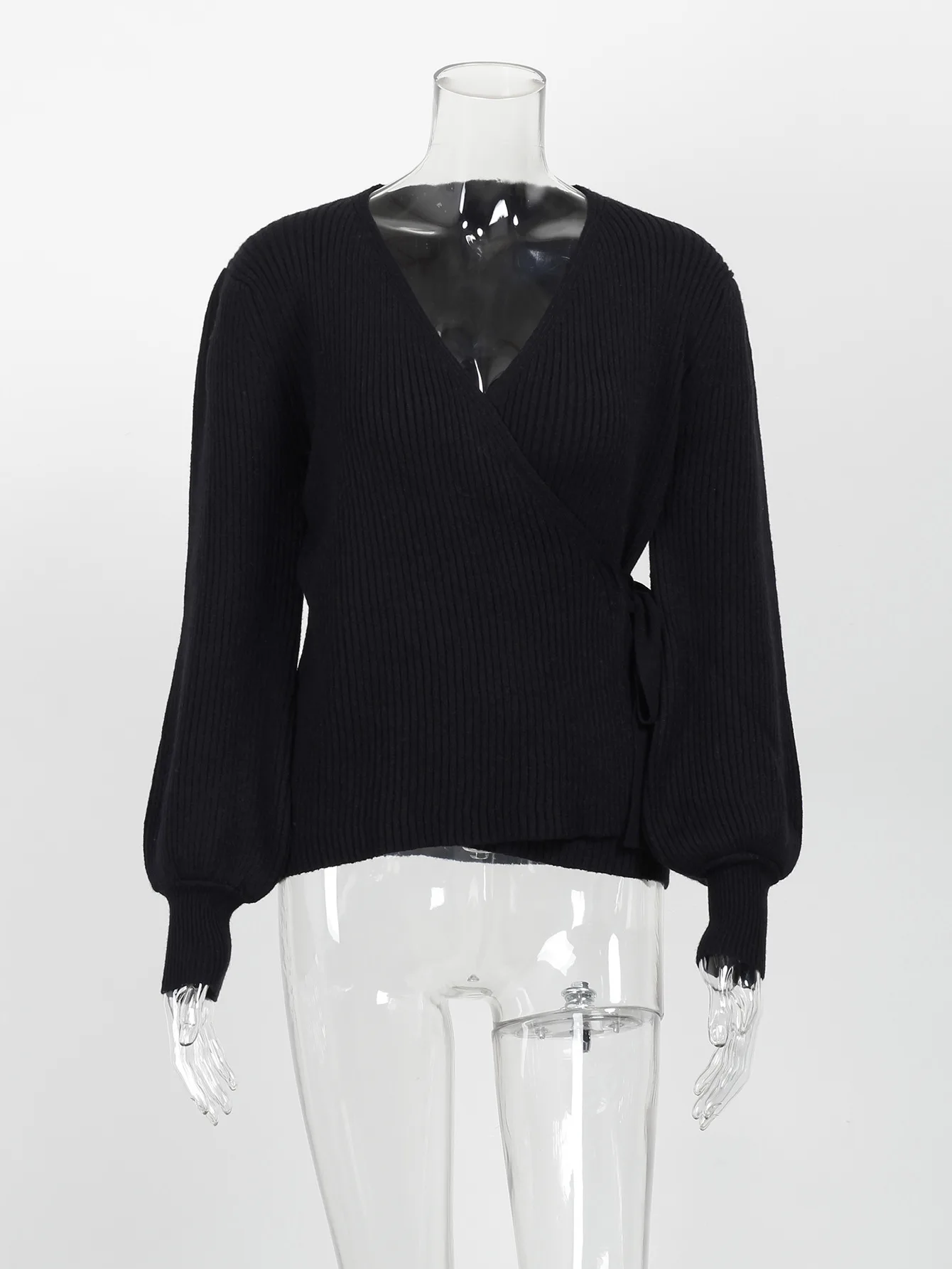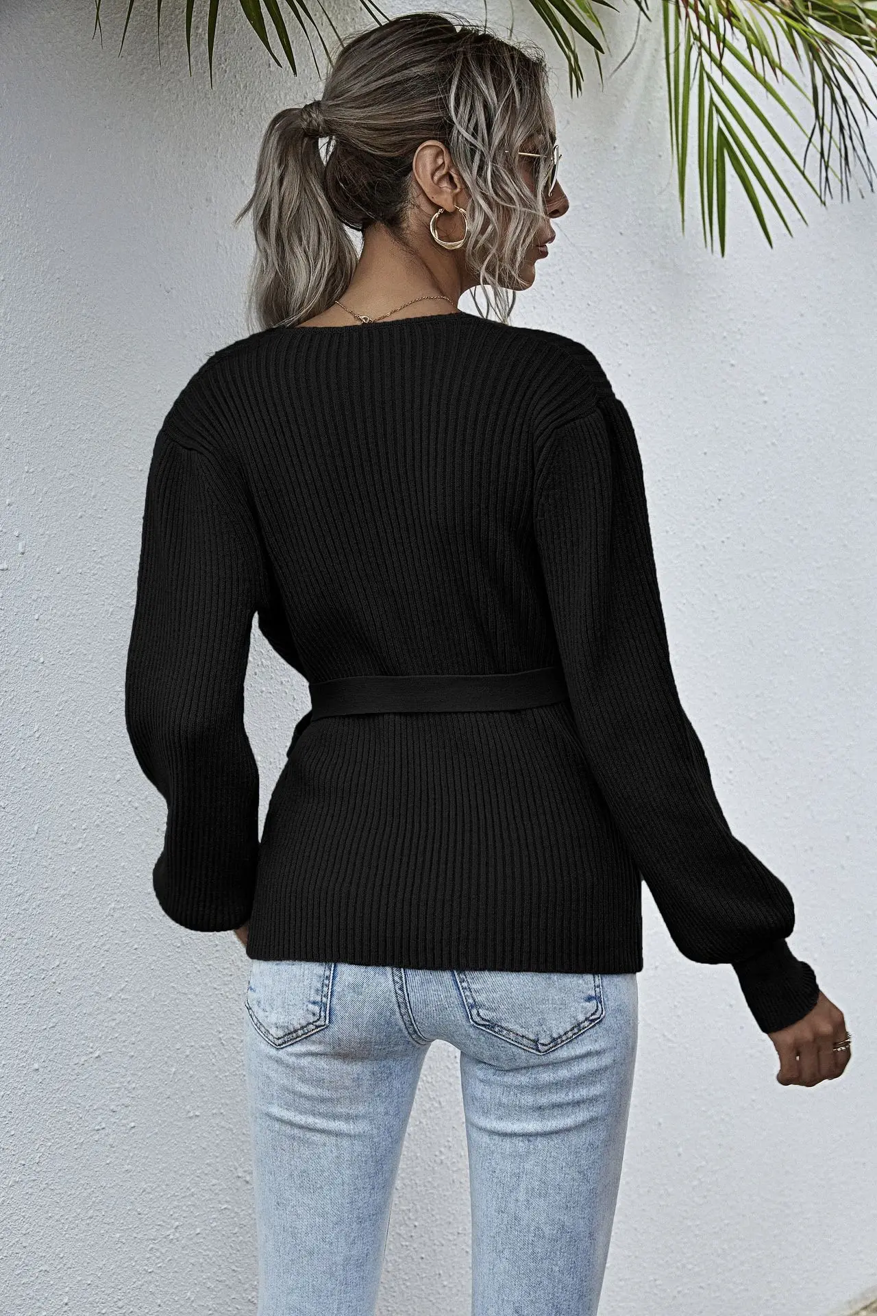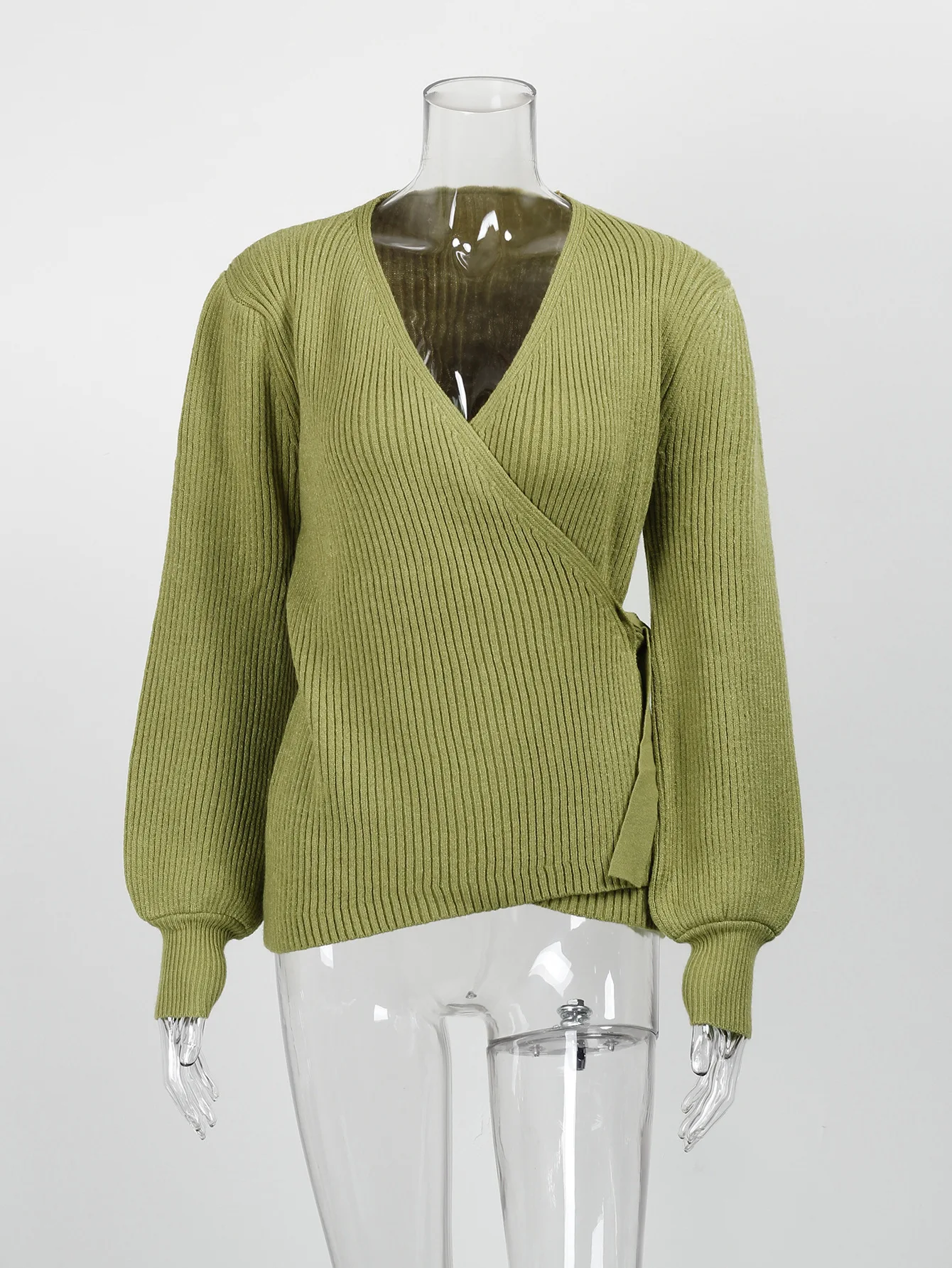 Элегантные женские повседневные вязаные свитера с v-образным вырезом и поясом на завязках; Однотонные рабочие свитера; женские свитера Новинка зимы 2020 года; Женские свитера