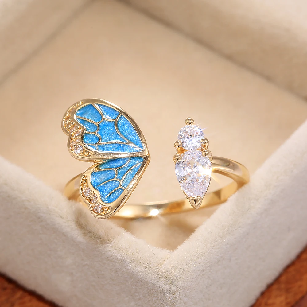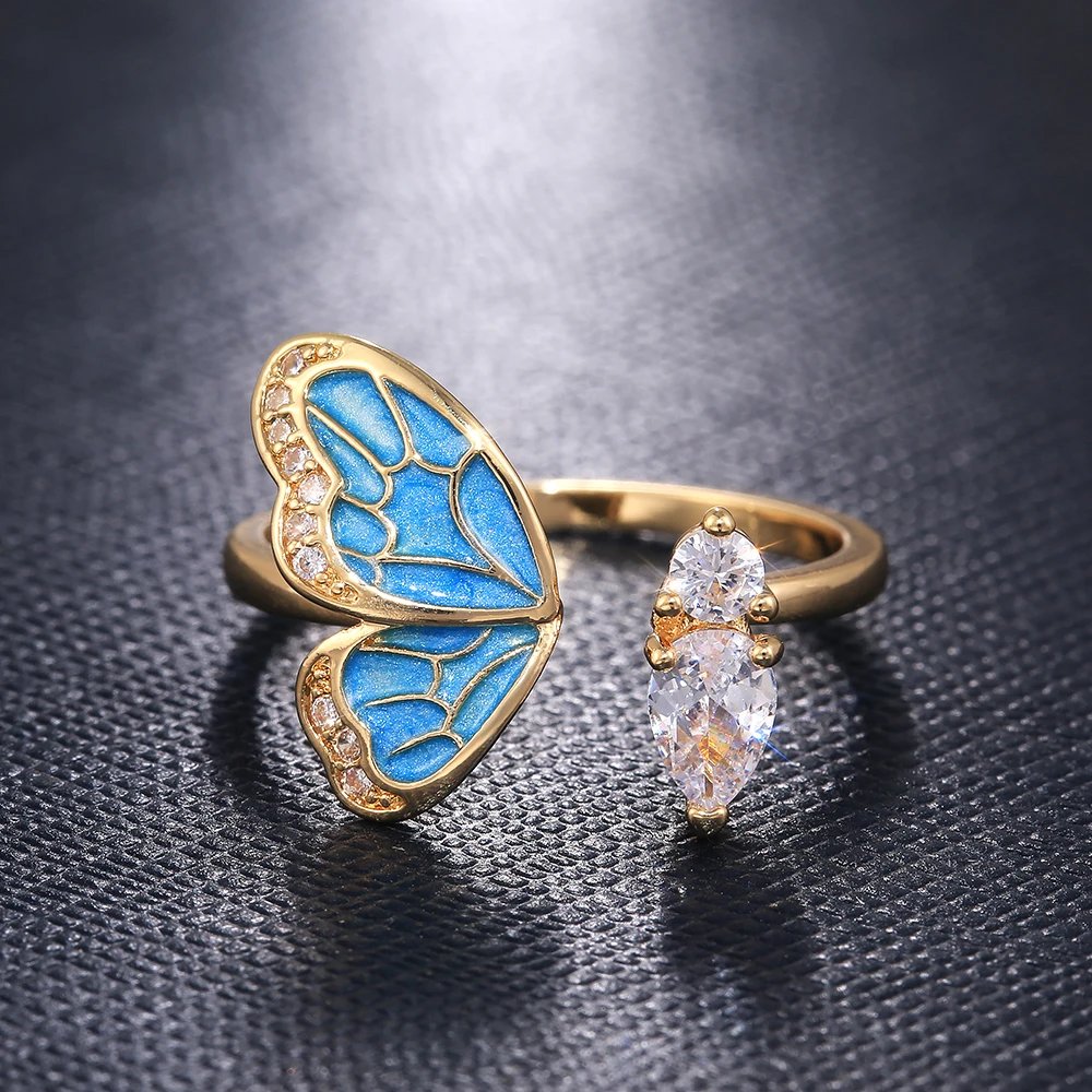 Huitan новые модные золотые цветные бабочки женские регулируемые открытые кольца свадебный юбилей подарок на день рождения Модные женские ювелирные изделия