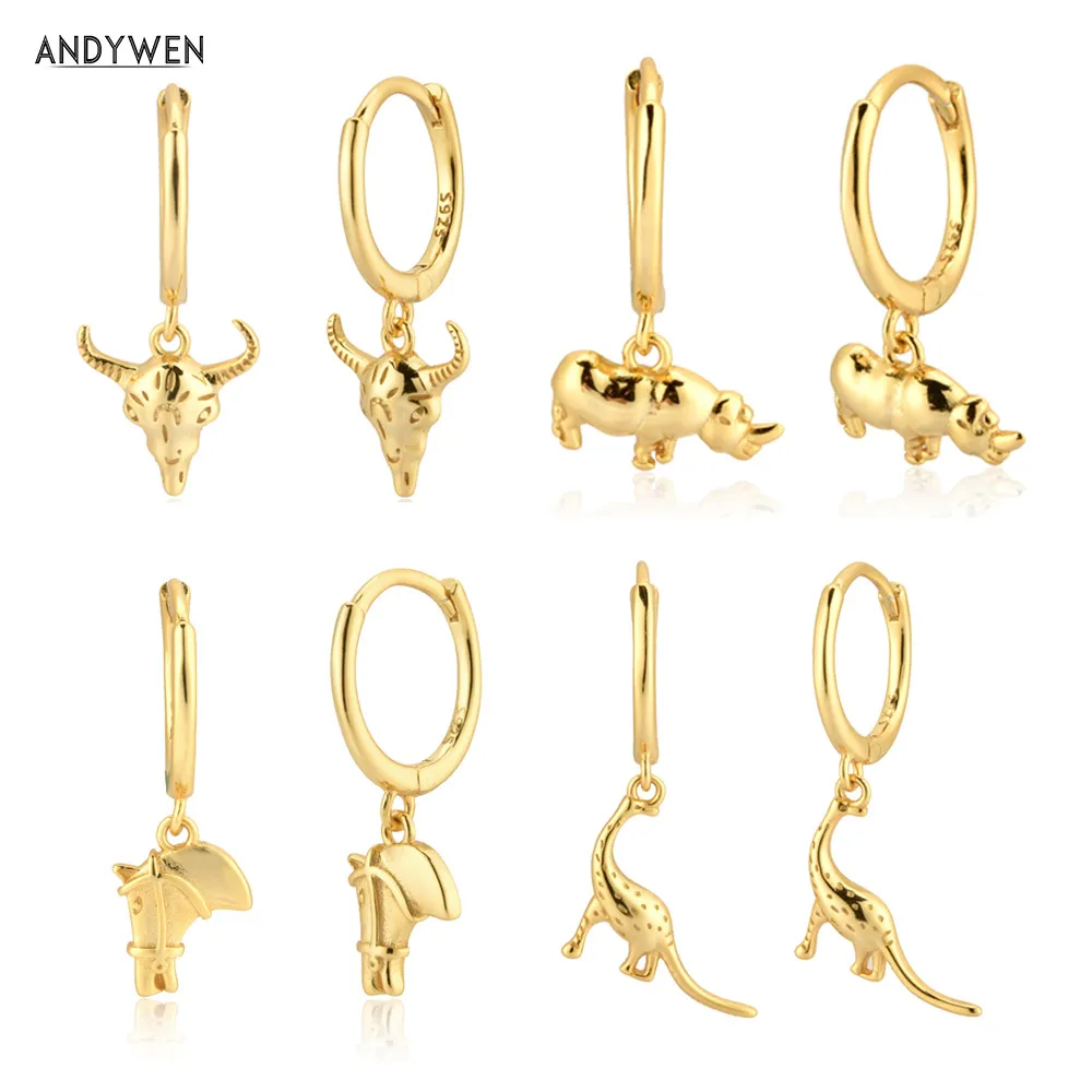 Серьги-подвески ANDYWEN из стерлингового серебра 200 пробы с золоты...