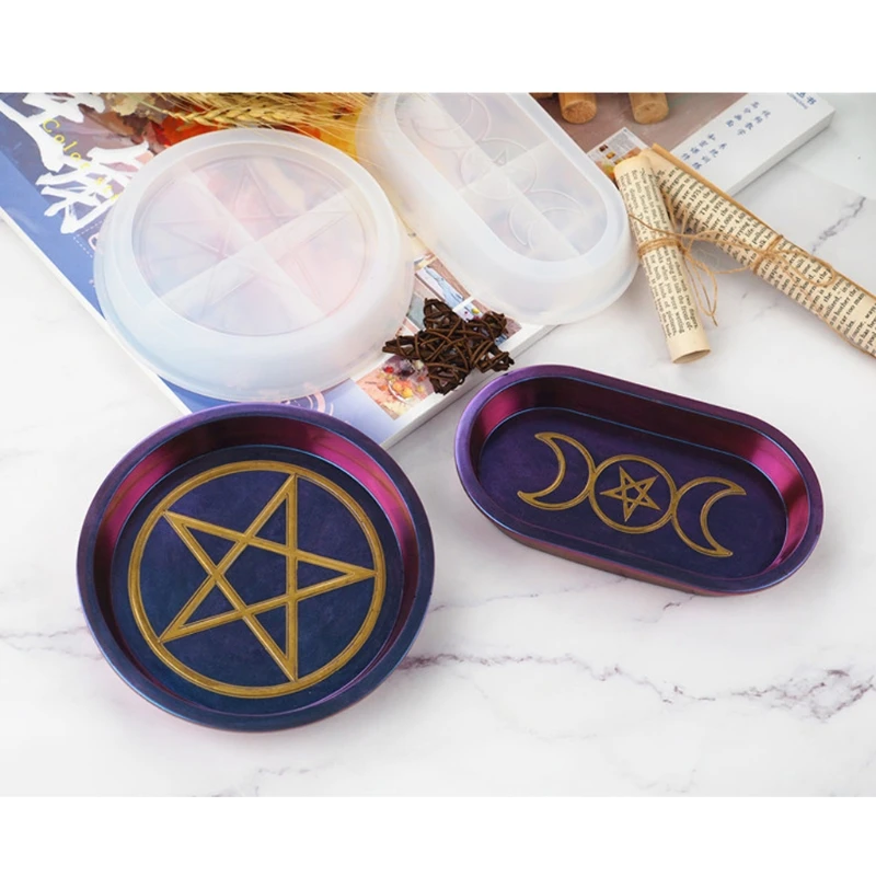 Форма в виде пентаграммы, поднос в виде Луны, звезды, свечи, коробка, формы из смолы, тарелка в виде богини тройной Луны, инструменты из смолы
