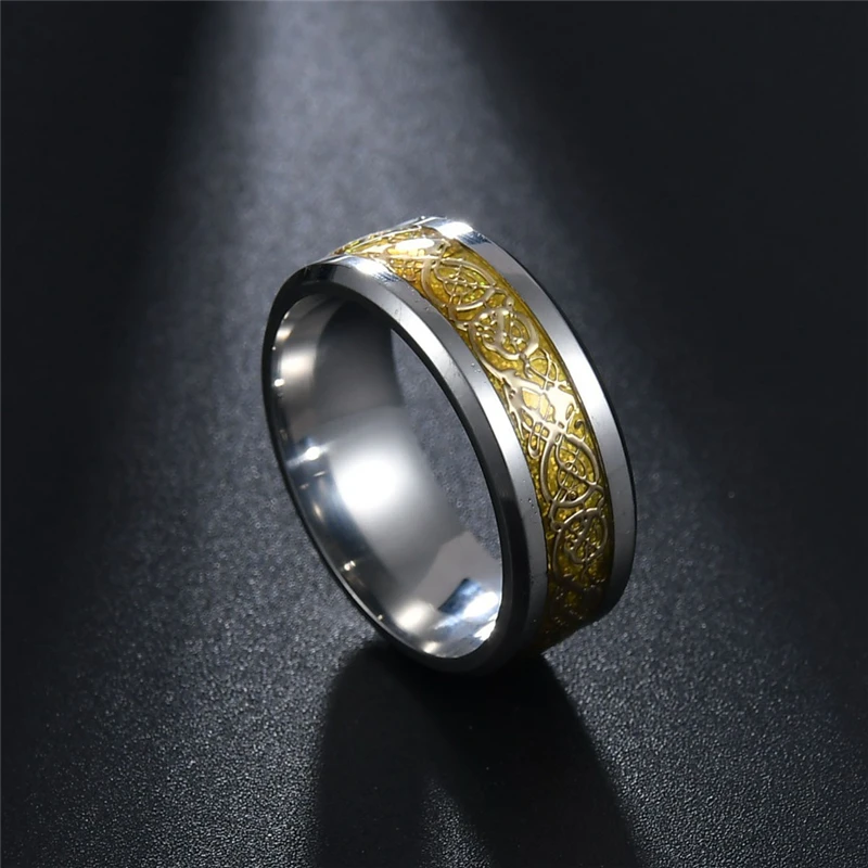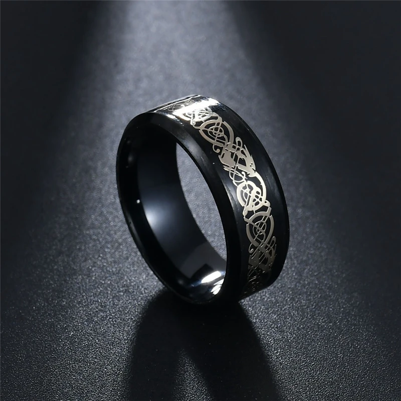 Кольцо с драконом из нержавеющей стали для мужчин, удобное обручальное кольцо с инкрустацией красного и зеленого цвета из углеродного волокна и черного дракона, бижутерия