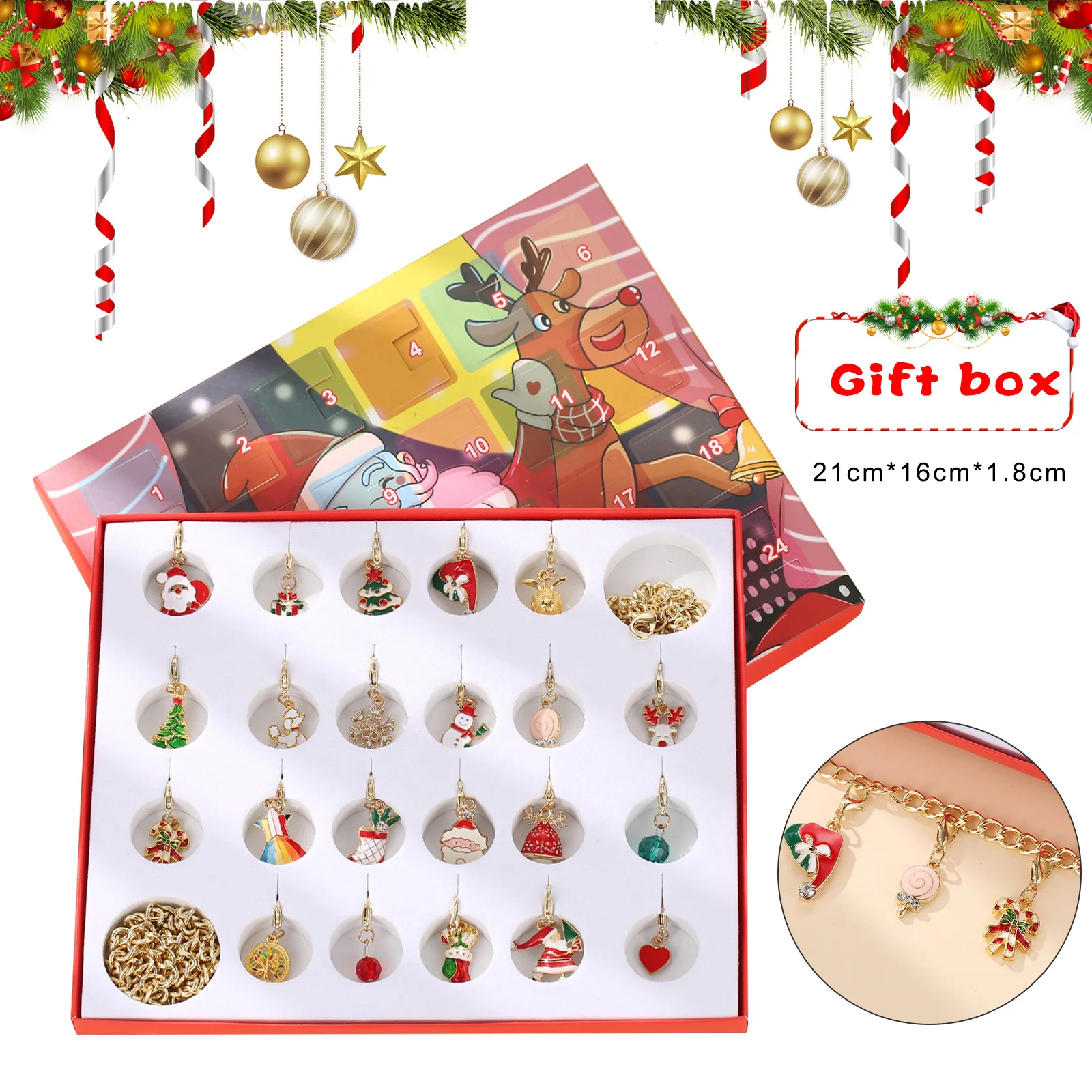 Рождественский календарь с навесом, Рождественский тематический Шарм сделай сам, ювелирные изделия, браслет, ожерелье, Набор для изготовления для девочек LL @ 17