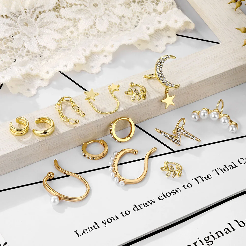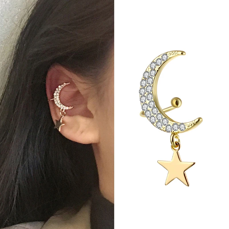 FNIO Мода сусальное золото молнии клип серьги для женщин без каких-либо пирсинг панк рок в винтажном стиле; С украшением в виде кристаллов для ушей, для украшения, подарки