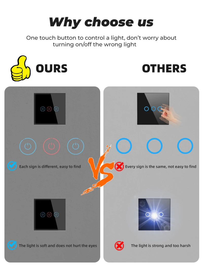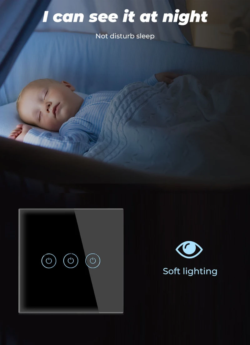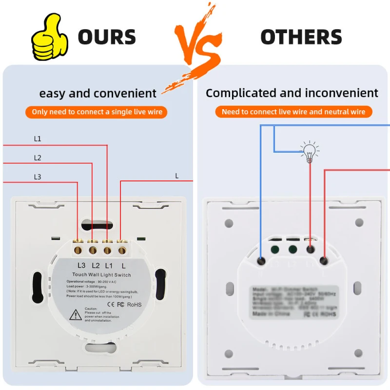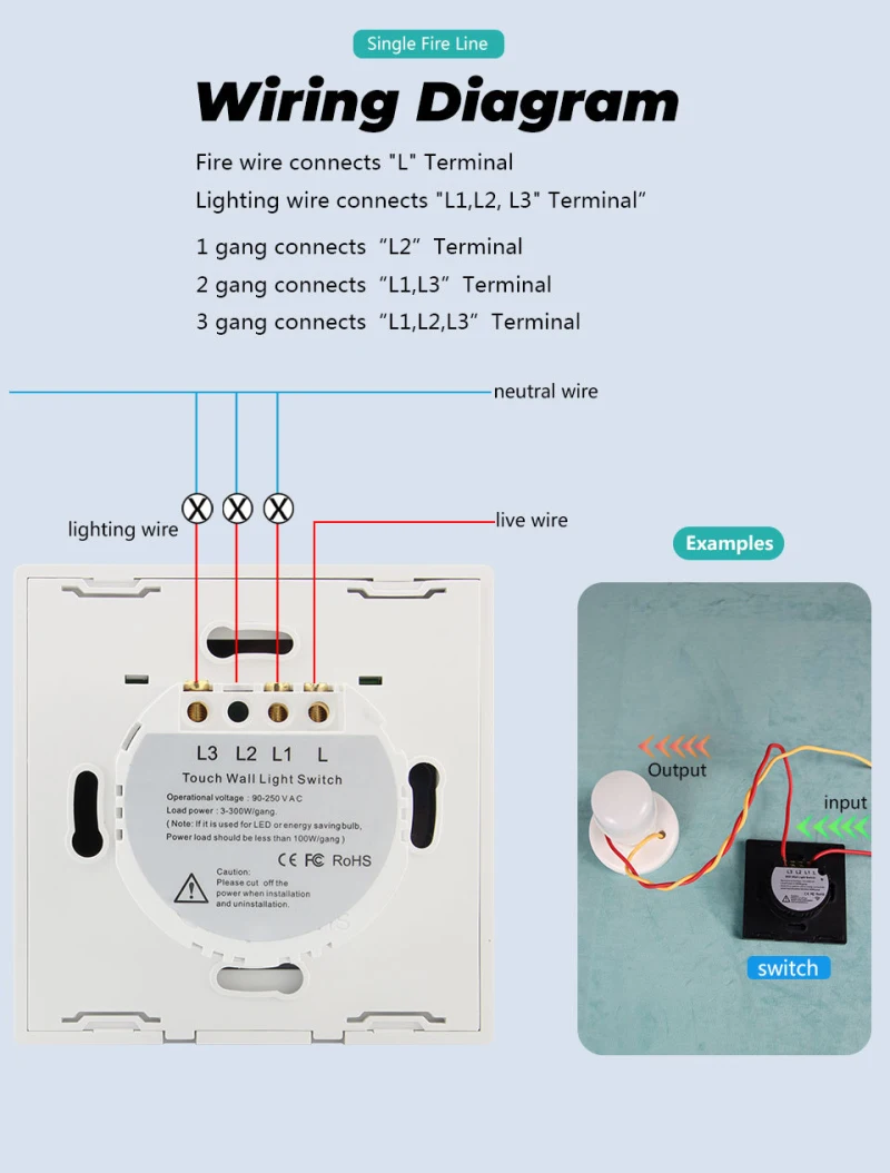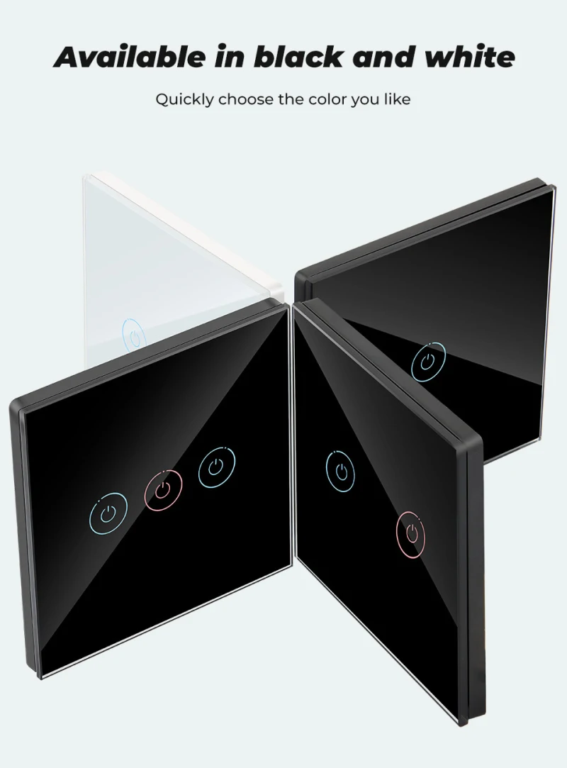 Переключатель Без нейтрального провода, одинарный Переключатель огня, стандарт ЕС, панель переключателей из закаленного стекла, настенный светильник, сенсорный переключатель, 3 комплекта, 1-позиционный сенсорный переключатель