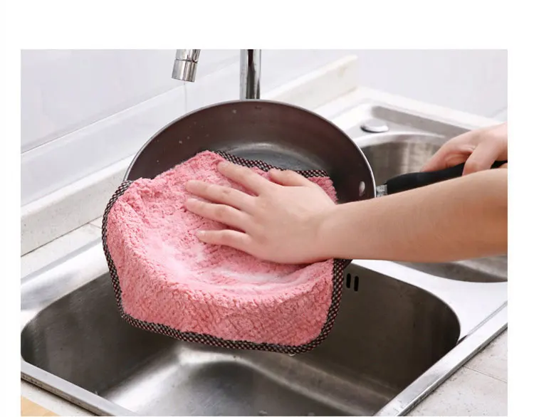 1. Двухсторонние, супер мягкие и удобные, антибактериальные, прочные, экологически чистые, впитывающие. 2. Легко моется, помогает нам чистить блюда, печи, раковины и т. Д. 3. Лучше удалять кухонные пятна и поддерживать чистоту и гигиеничность.
