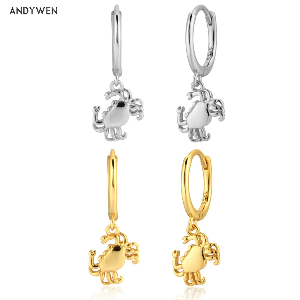 Серьги-подвески ANDYWEN из стерлингового серебра 200 пробы с золотым крабом, серьги-капельки для пирсинга, модные простые украшения для вечеринки, 925