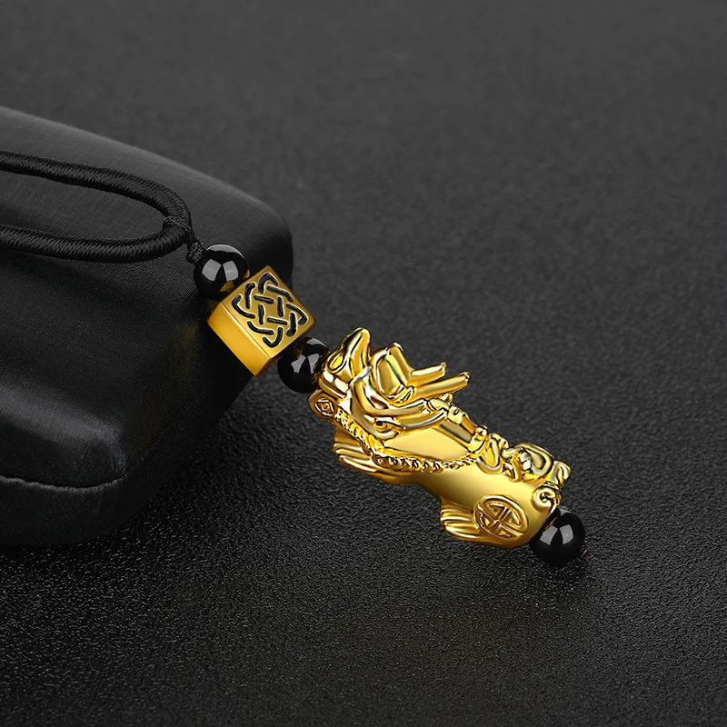Ожерелье с подвеской Obsidian Pixiu, имитация 24-каратного золота, ...