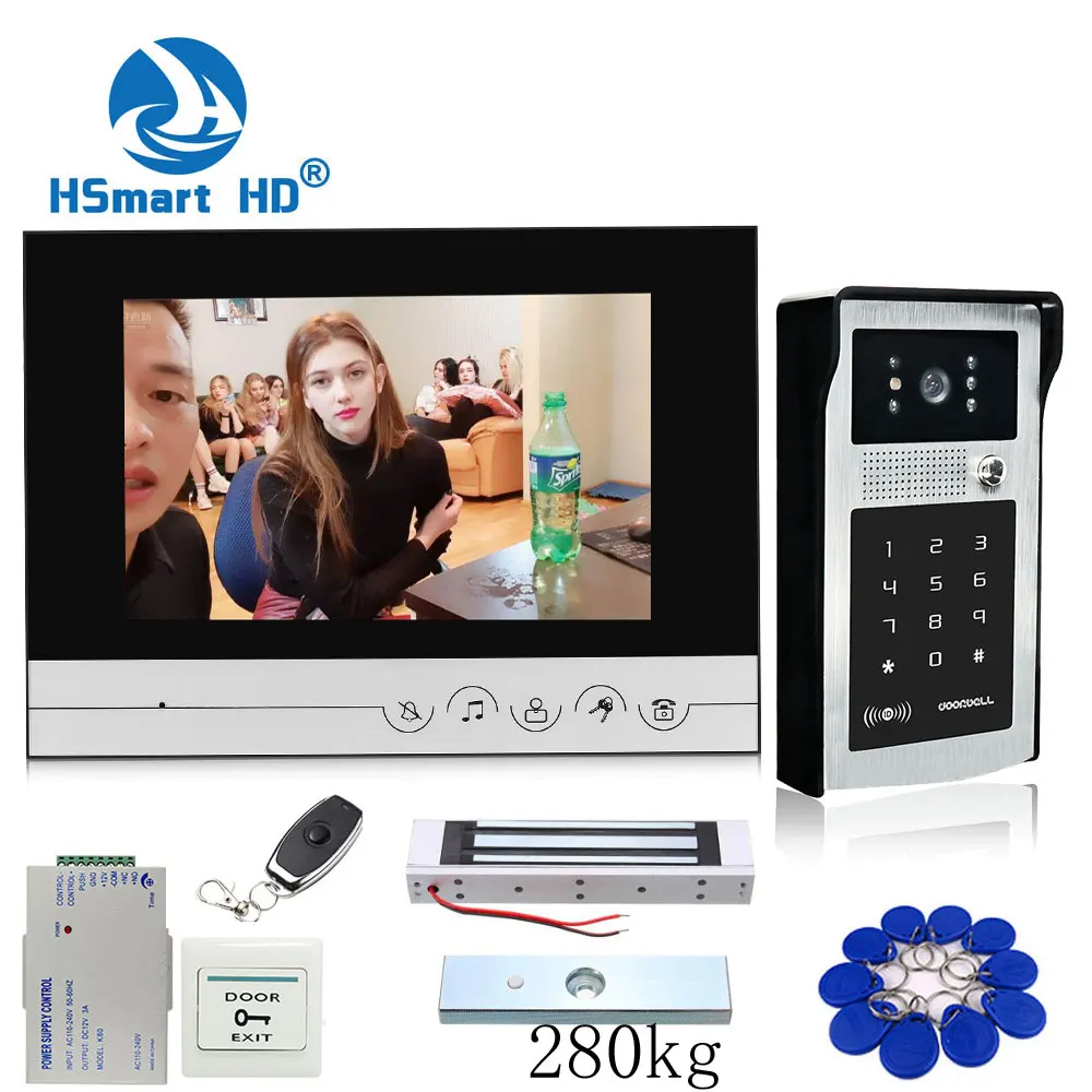 Проводной видеодомофон с экраном 7 дюймов, система видеодомофона, 1 монитор, 1 пароль, система с радиочастотной идентификацией и Электрический магнитный замок