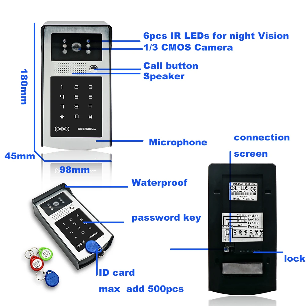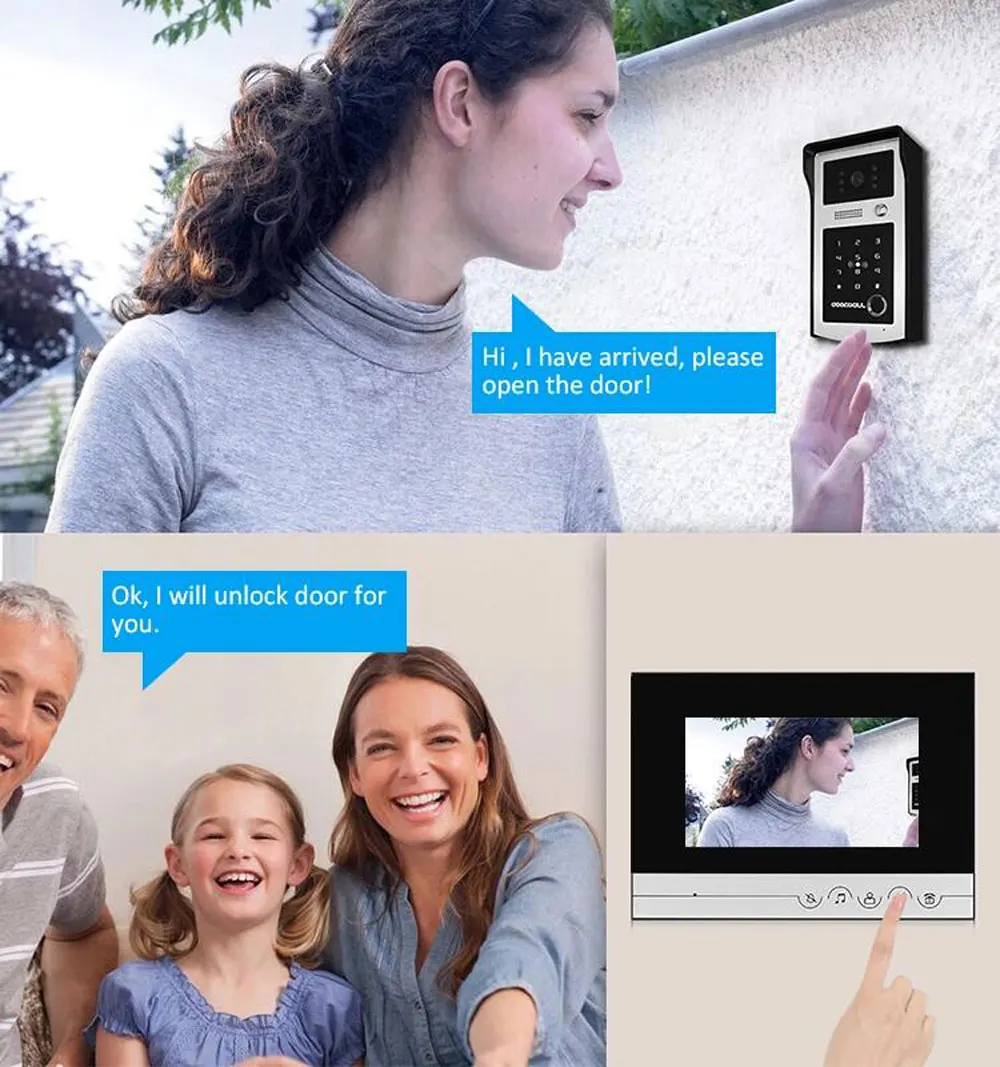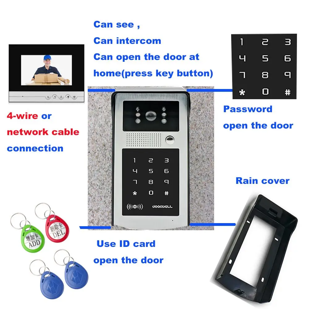 Проводной 7 "видео телефон двери дверной звонок видеодомофон домашняя система безопасности + ИК RFID код клавиатуры камеры