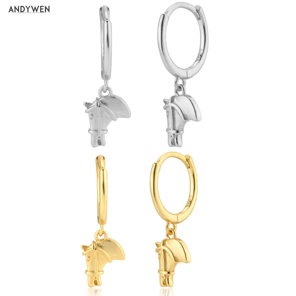 Женские серьги-капельки для пирсинга ANDYWEN, серьги из стерлингового серебра 200 пробы с золотистым крабом и головой лошади, модные свадебные украшения для женщин, новинка 925