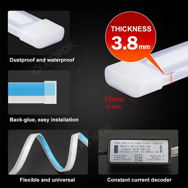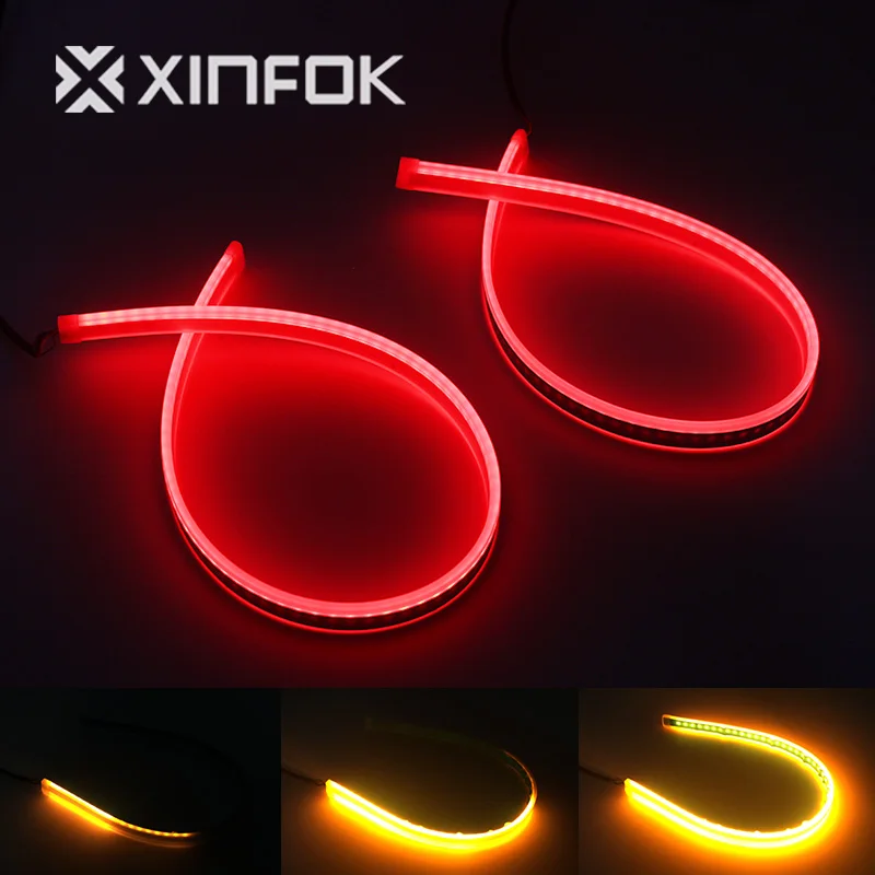 Потока сигнал поворота, стоп-сигналы, DC 12 В, белый красный лед-синий желтый Универсальный Водонепроницаемый гибкий светодиодный DRL Габаритные огни