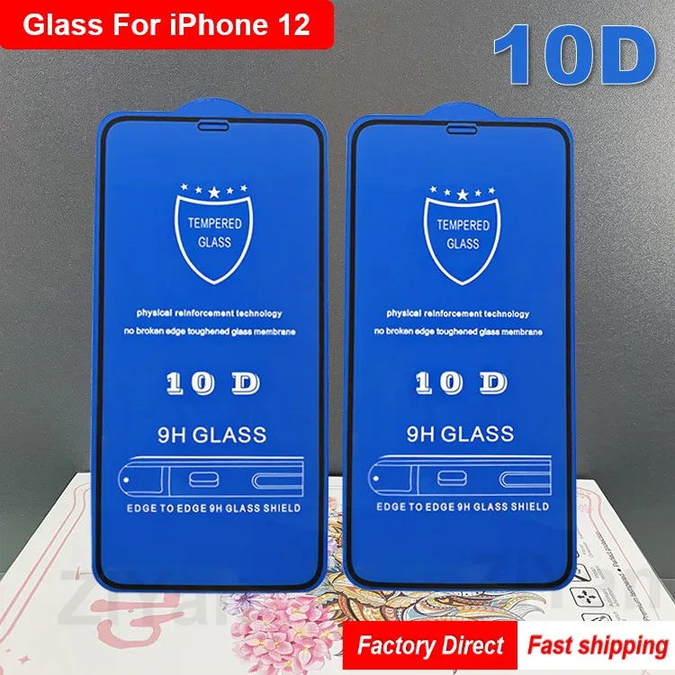 Защитное стекло 10D для iPhone 13 11 Pro Max XS X 8 7 6S Plus SE2, пленка из закаленного стекла с полным покрытием для 12 Pro, 50 шт.