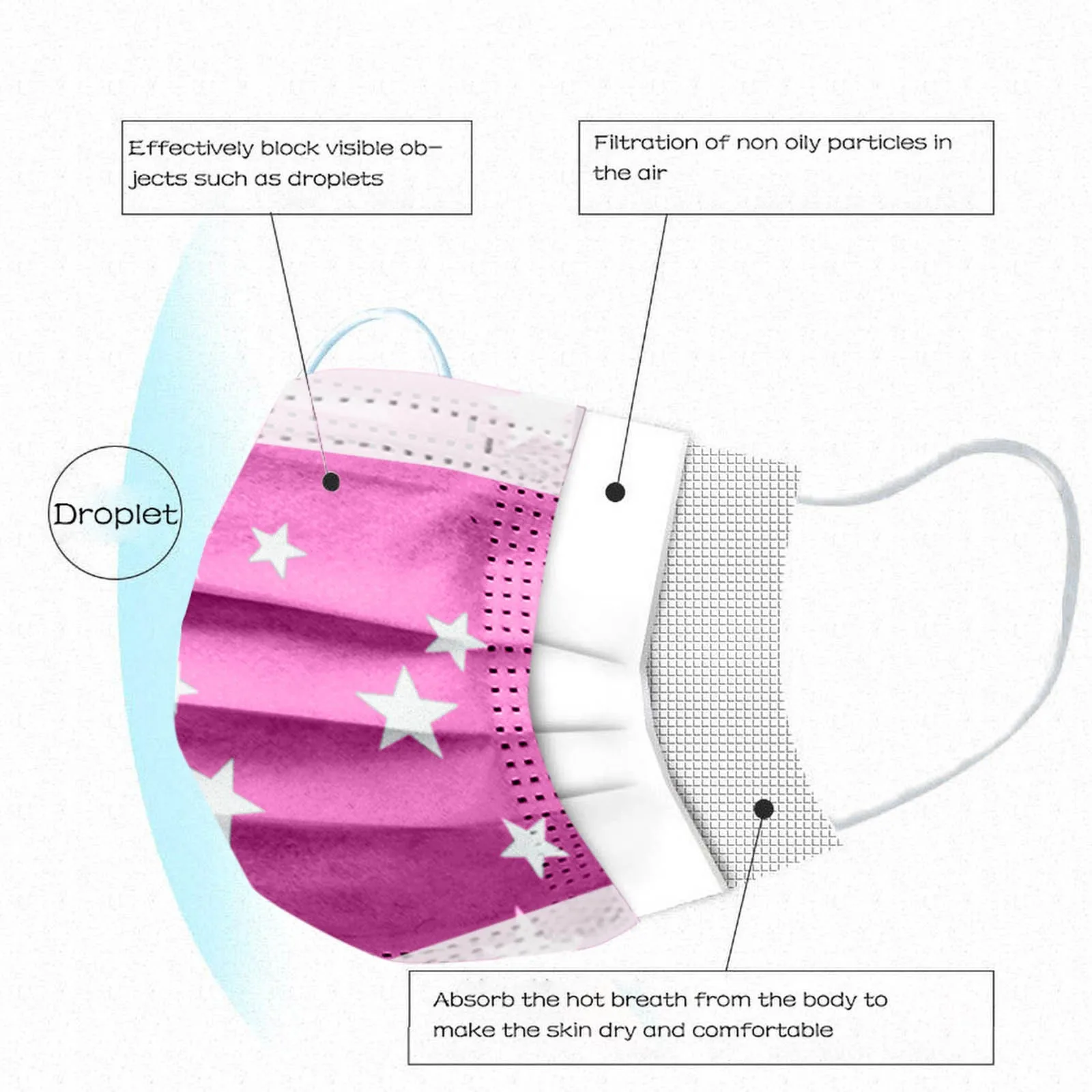 10/20/50/100 шт. детская маска Звезды Печать дышащий 3-Слои одноразовые маски